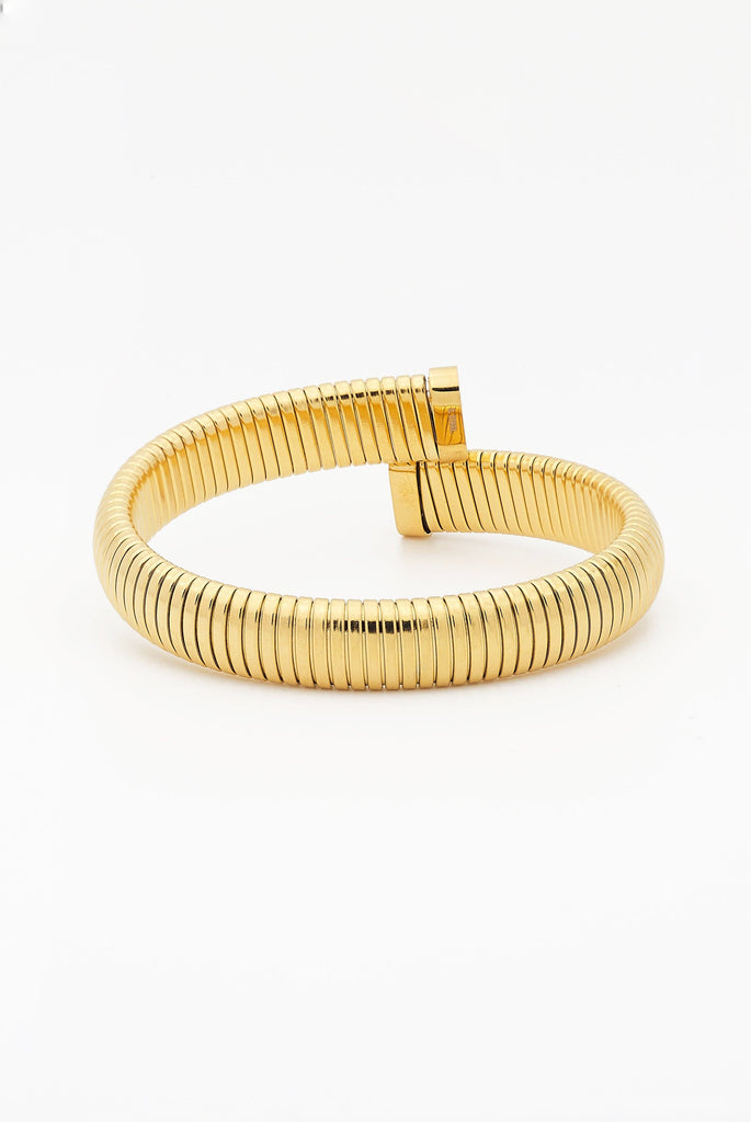 Puedes llevarlas solas como pieza statement o combinarlas con pulseras finas para un look más personalizado y en tendencia.