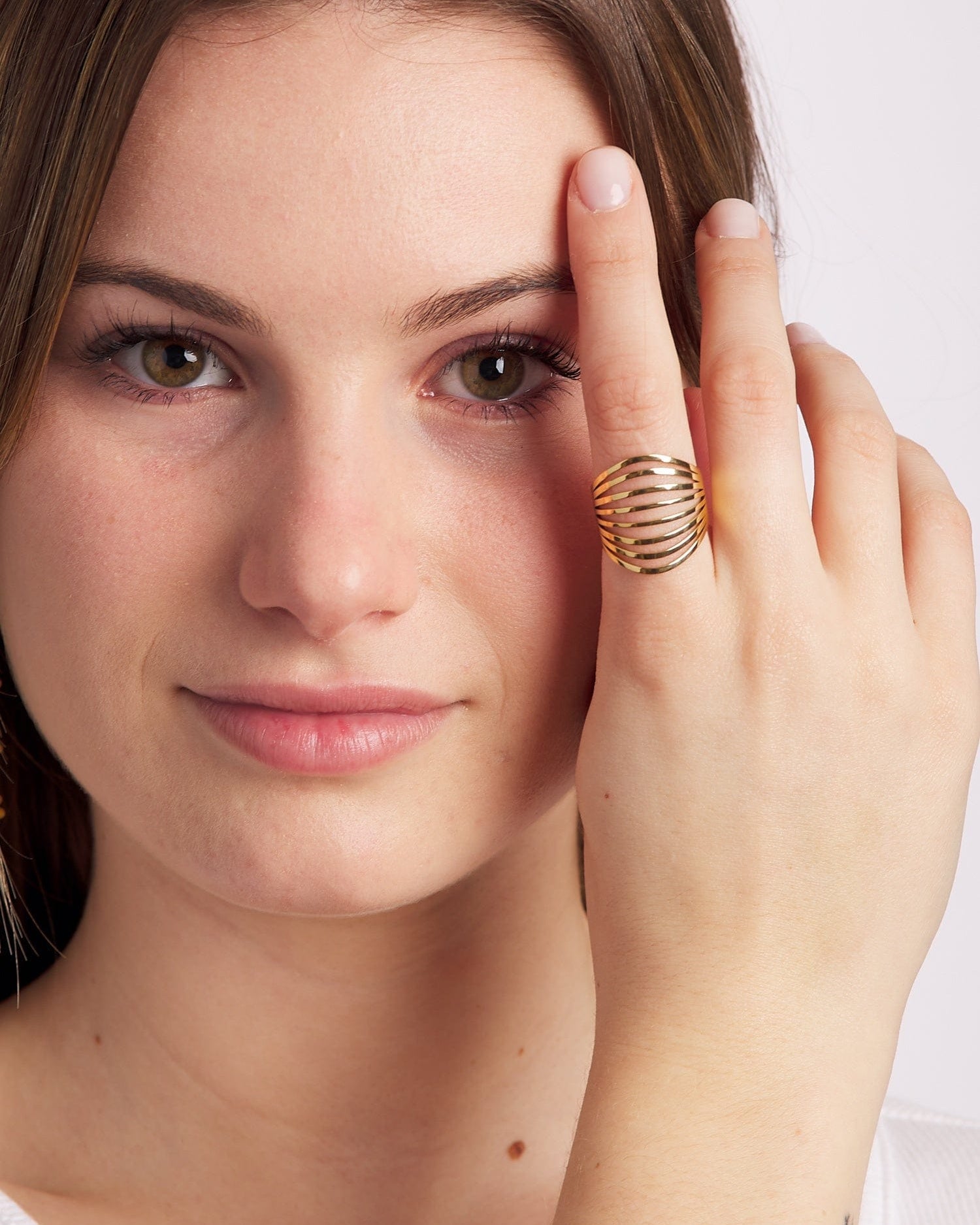 El anillo ancho dorado Lily te enamorará , cómo queda puesto!, hace que tu mano luzca un anillo único , súper bonito y elegante, fino y versátil, combínalo con por ejemplo el espectacular anillo de moda turquesa Nura. Son waterproof, por eso podrás usarlo todo el verano.