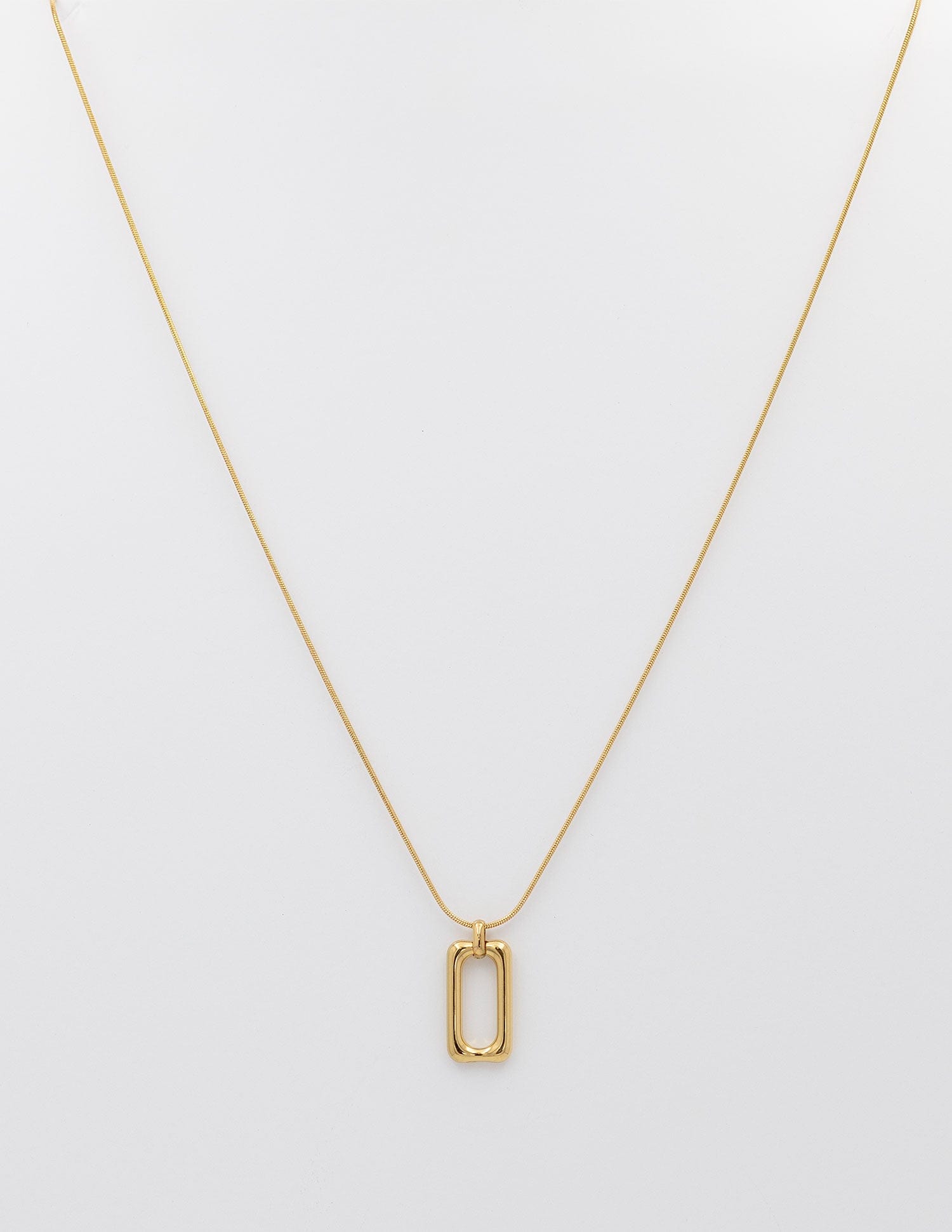 Collar geométrico con forma de rectángulo, un colgante vanguardista y diferente . Este collar rompe lo establecido y se convierte en una pieza imprescindible para quienes apuestan por la originalidad. Combínalo con alguna gargantilla de nuestra colección.