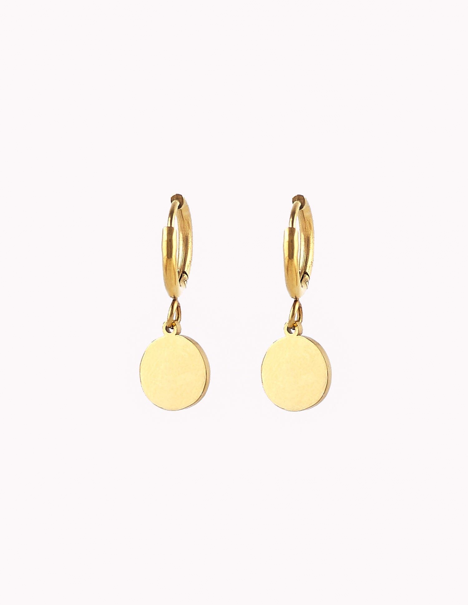 The Amalia earrings are simple and very versatile. A plain medallion hangs from a hoop with a click closure, completing your combinations perfectly. It will be very easy for you to choose the perfect combination if you have more than two holes, and if not, they look beautiful and super fine to wear with the first two alone.
