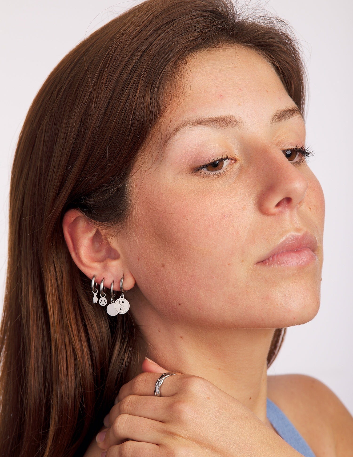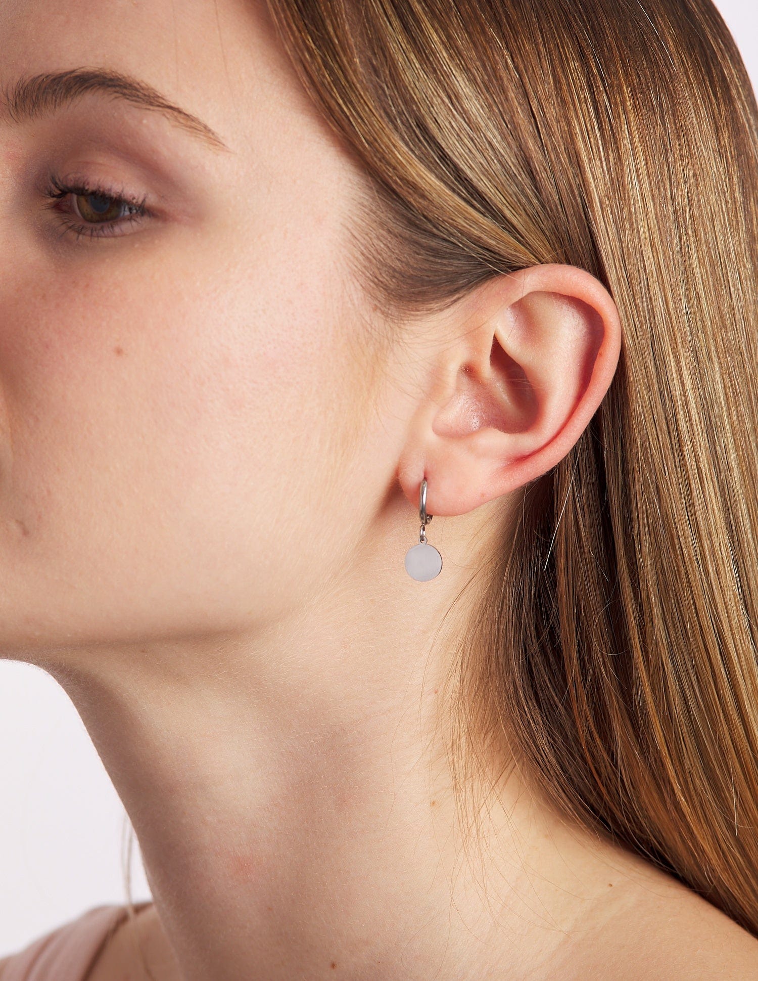 The Romina earrings are simple and very versatile. A plain medallion hangs from a click-closed hoop, completing your combinations perfectly. It will be very easy for you to choose the perfect combination if you have more than two holes, and if not, they look beautiful and super fine to wear only the first two.