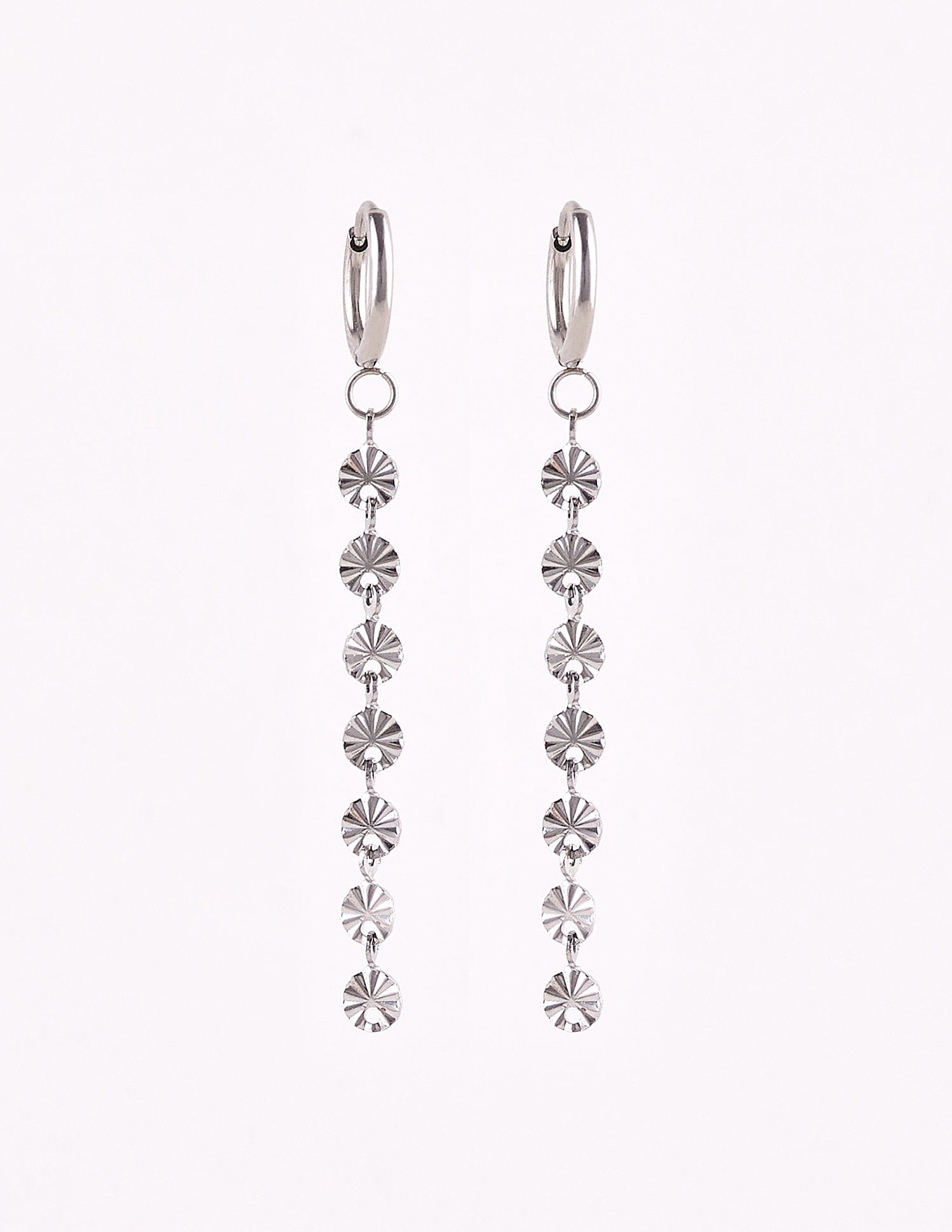 This long Macarena earring model stands out for its medallions and its versatility in terms of combinations.