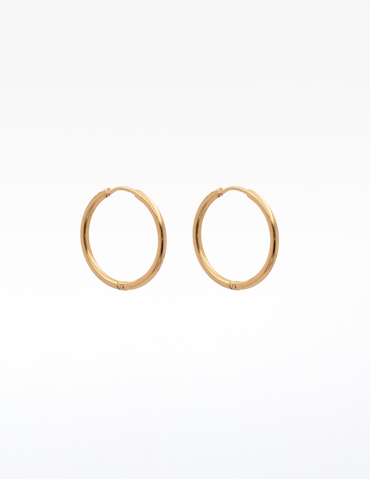 DESCRIPTION: The Valen M mini hoops are super thin and subtle, perfect to wear as your first ear piercing, or to combine in your second piercing as we have done, combining them with… They are M because we also have plain mini hoops in S (Asha) and XS (Amelie).