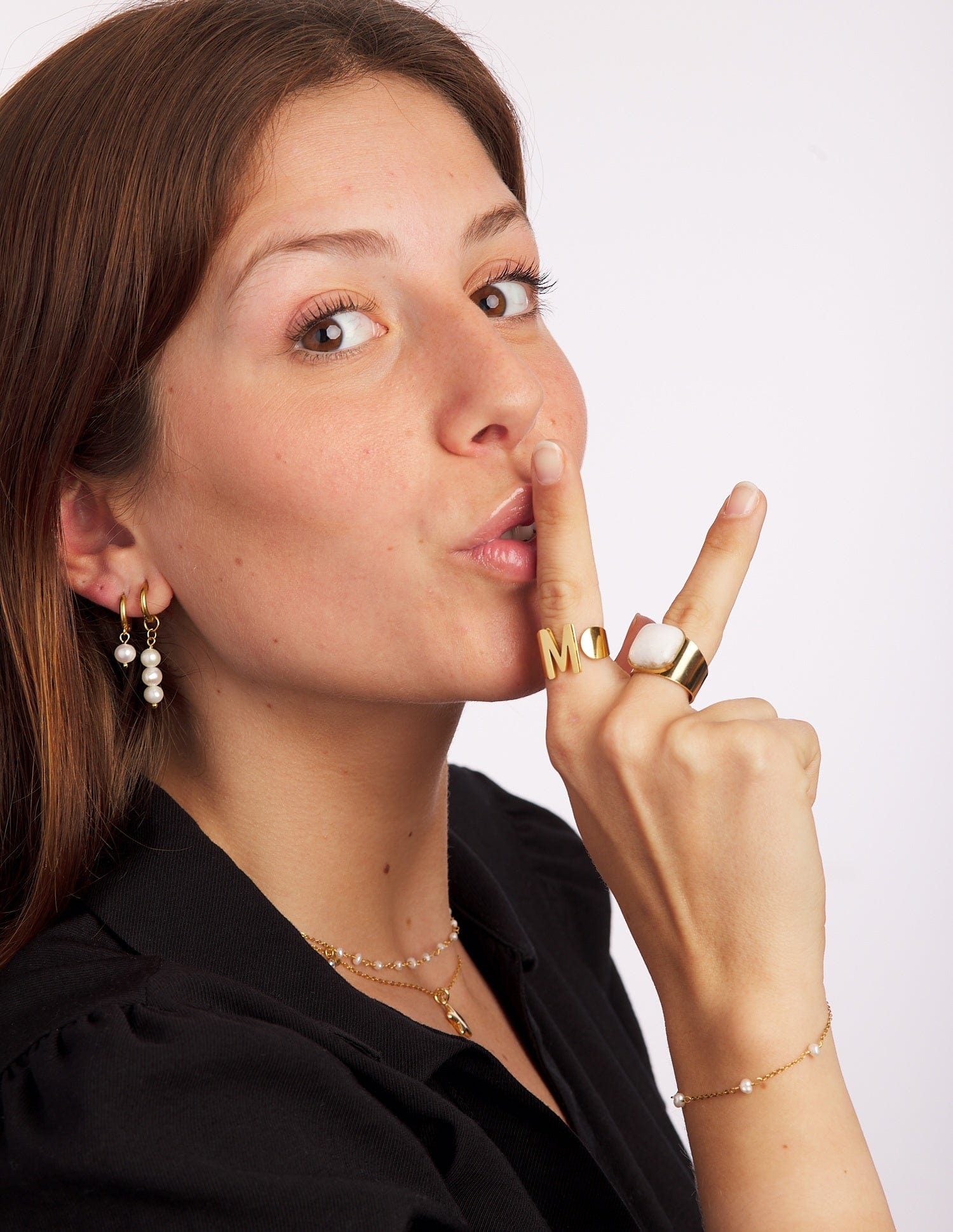 This model of Paula pearl earrings is made of gold-colored steel and has a click closure, making them super easy to put on and take off. You can get them wet without any problem since they are completely water resistant.
