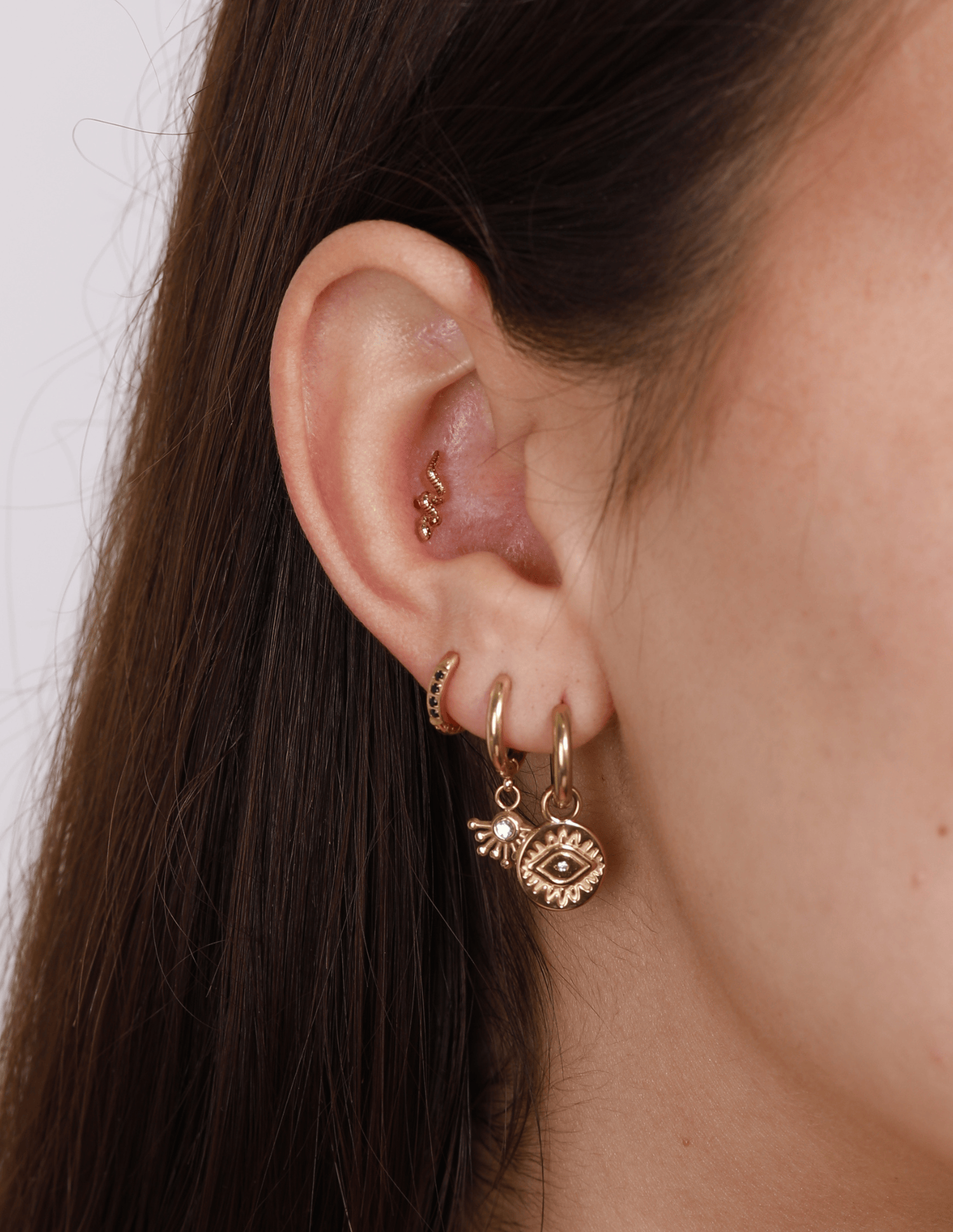 Estos minis de serpiente son ligeros, atrevidos y perfectos para el día a día. Estos mini pendientes de acero inoxidable son un best seller de nuestra colección . Con la resistencia y durabilidad del acero, mantiene su color dorado siempre.