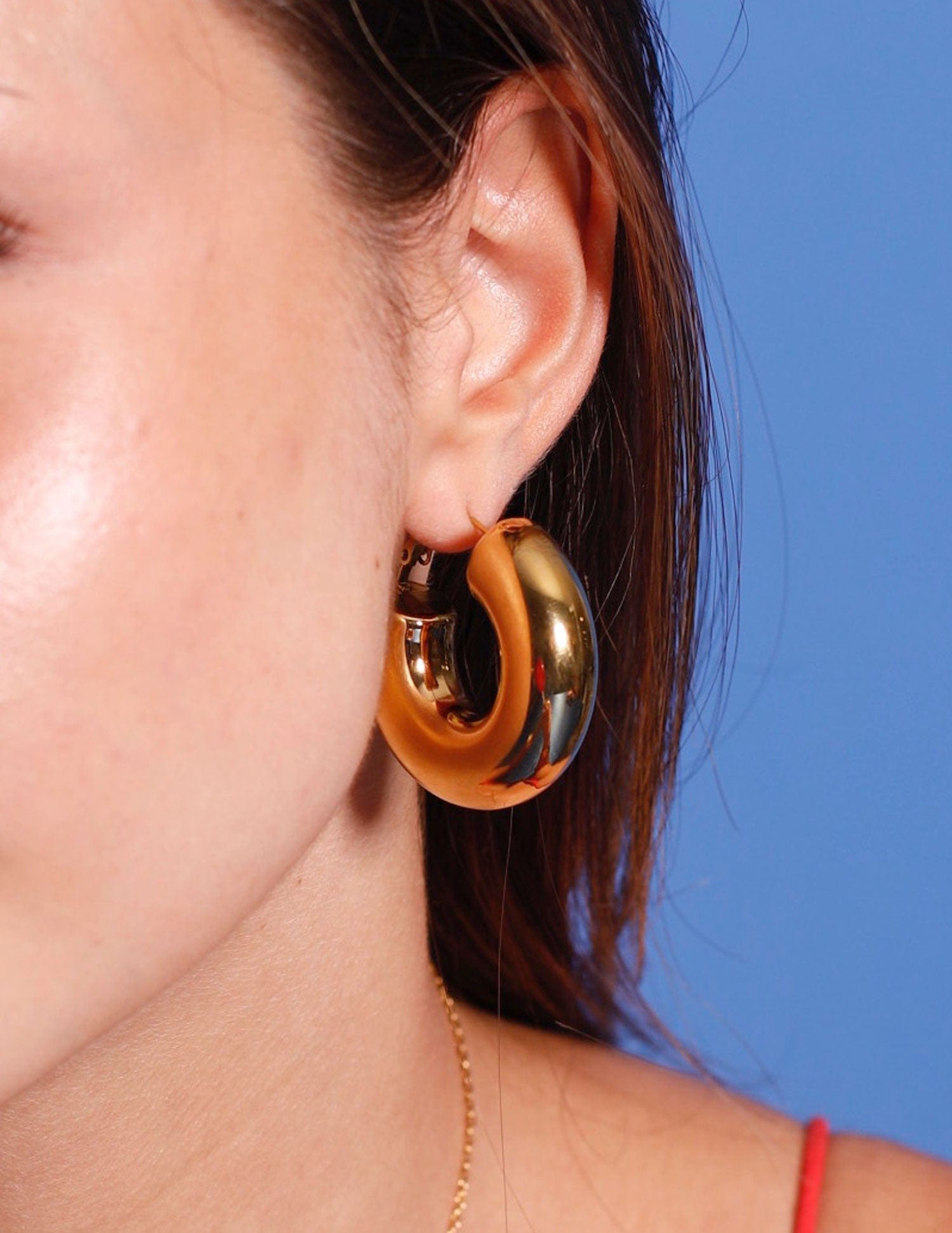 Aros gruesos dorados de acero inoxidable, estos pendientes aros miden 40mm, también en nuestra colección tenemos unos más pequeños de 30mm, con estos aros gruesos luces elegancia sin esfuerzo!