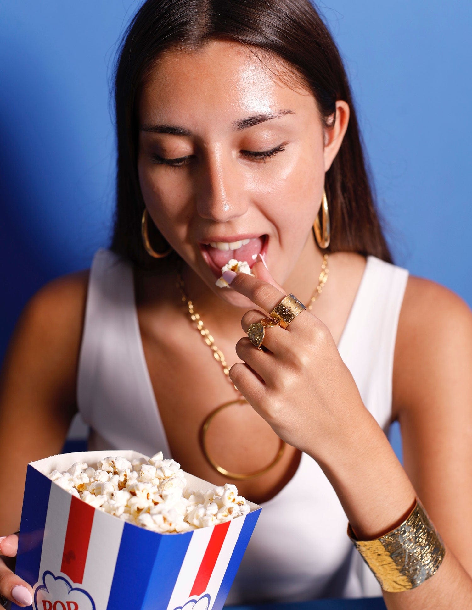 Anillo de acero inoxidable ancho con flores caladas y detalles en circonitas pequeñas. Este anillo es elegante y sofisticado para uso diario o cualquier look de noche. Gracias a su sistema ajustable, se adapta fácilmente a diferentes tallas de dedo brindando comodidad sin perder estilo.