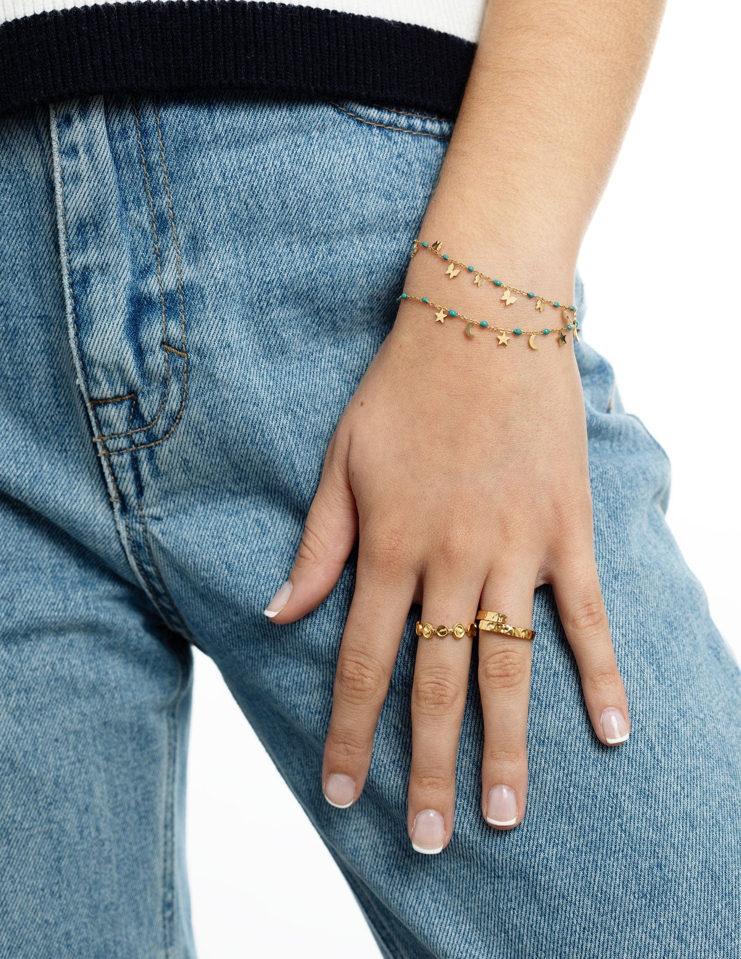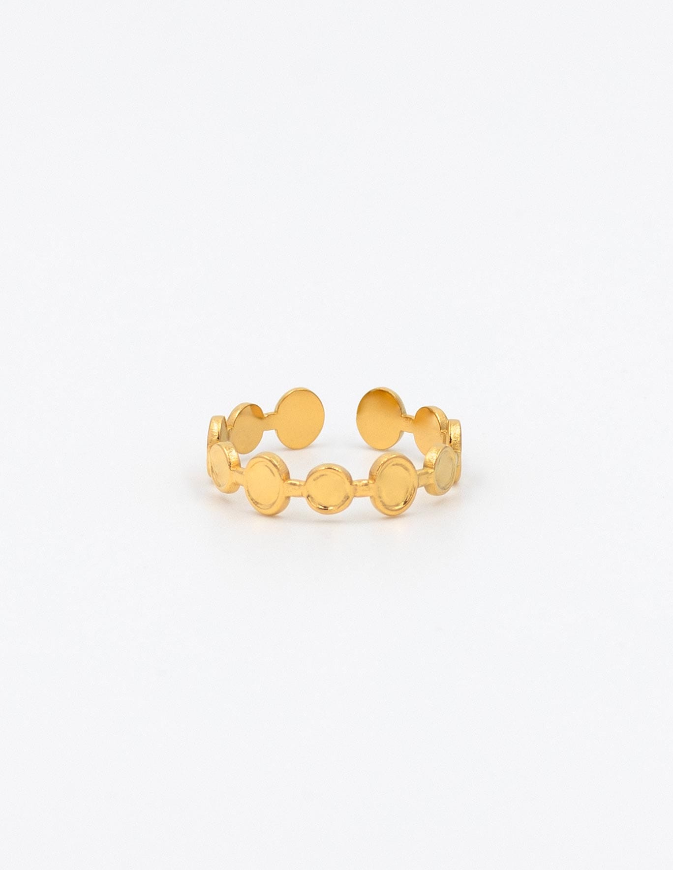 Leontina es un anillo ajustable con círculos dorados, a cualquier dedo que podrás llevarlo siempre y mojarlo tantas veces quieras, es un anillo atemporal con medallitas que rodean tu dedo. Regálalo y quedarás genial.