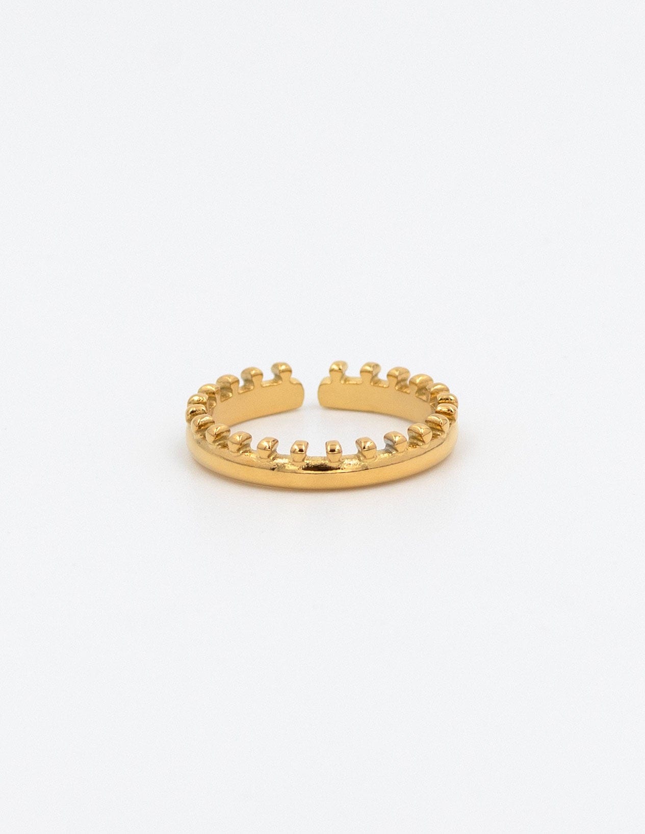 El anillo Drusila, es sencillo, su forma de “corona” le dá un toque sofisticado que te va a encantar. Es muy combinable con los pendientes Macy. El material es acero, podrás mojarlo sin problema, además es súper cómodo para llevarlo siempre, y ajustable a cualquier dedo.