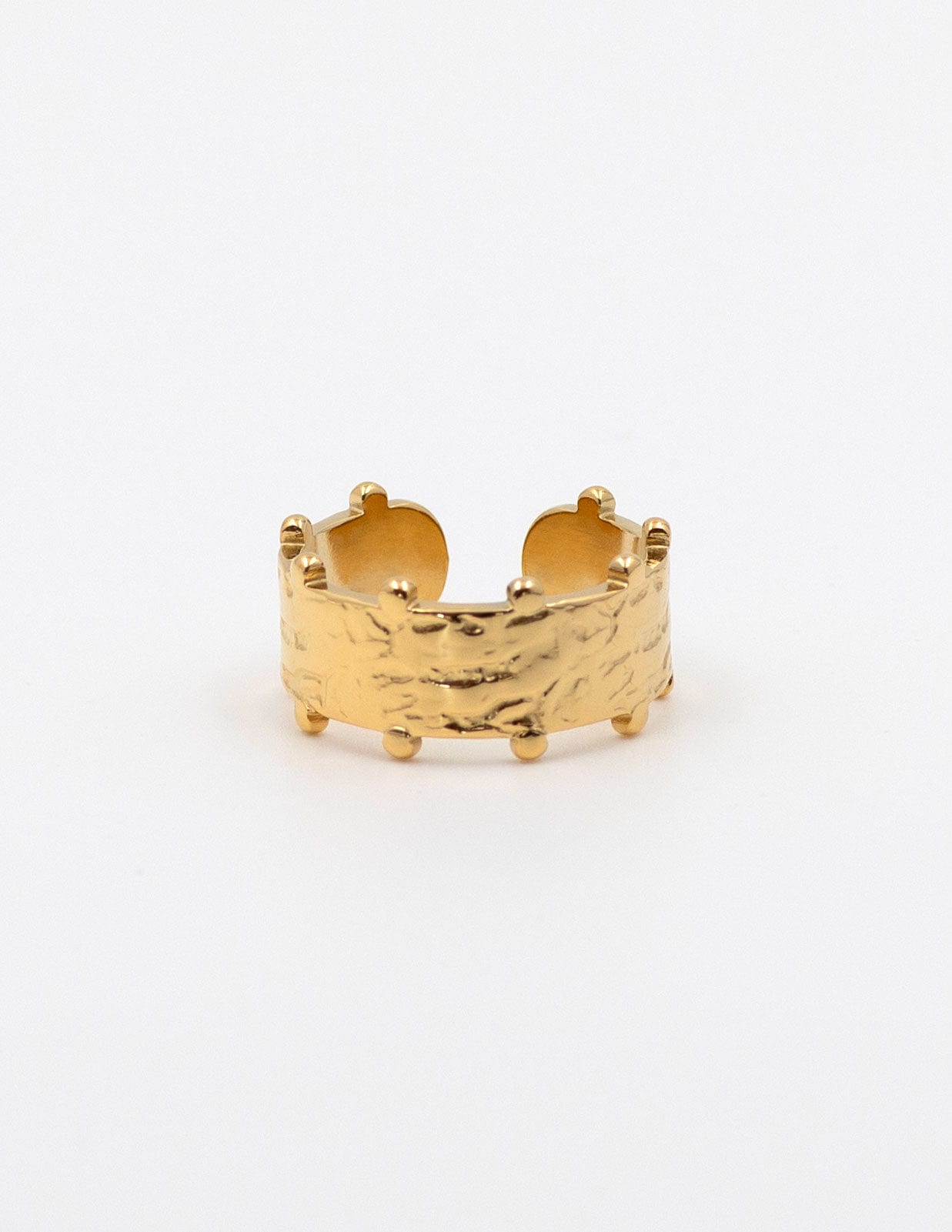 El anillo con corona dorada Gia, es uno de los anillos con más personalidad de nuestra colección, nos hemos enamorado y no hemos dudado en quedarnos uno para nosotras. Tiene un ancho perfecto, cómodo de llevar y combinable con el anillo Telma por ejemplo, pero podríamos deciros muchos más.