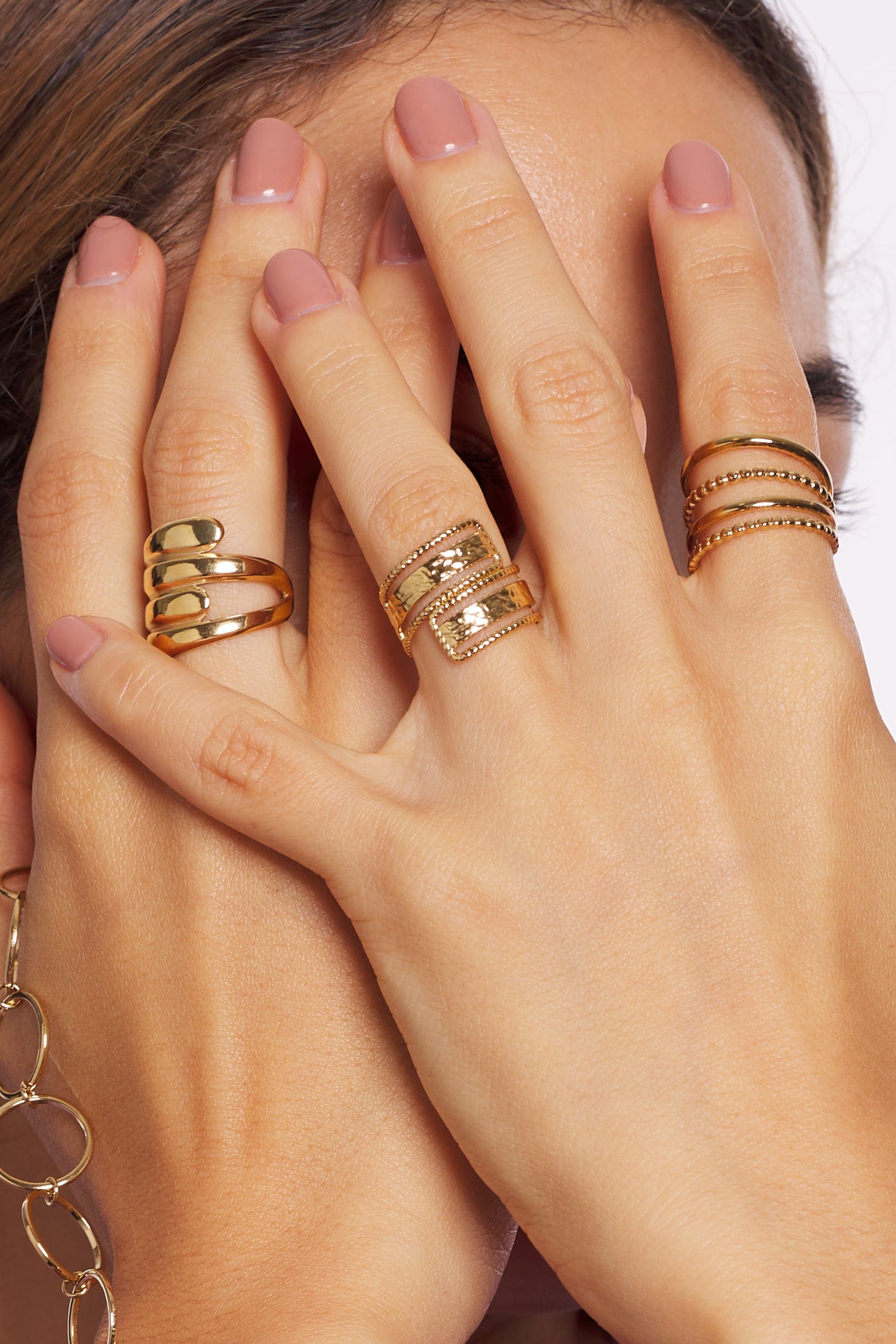 El anillo cuadruple ajustable Gaëlle es un anillo cuádruple con dos de sus líneas lisas y las otras dos con relieve. Un anillo ajustable y en acero inoxidable que se convertirá en un fondo de armario imprescindible.