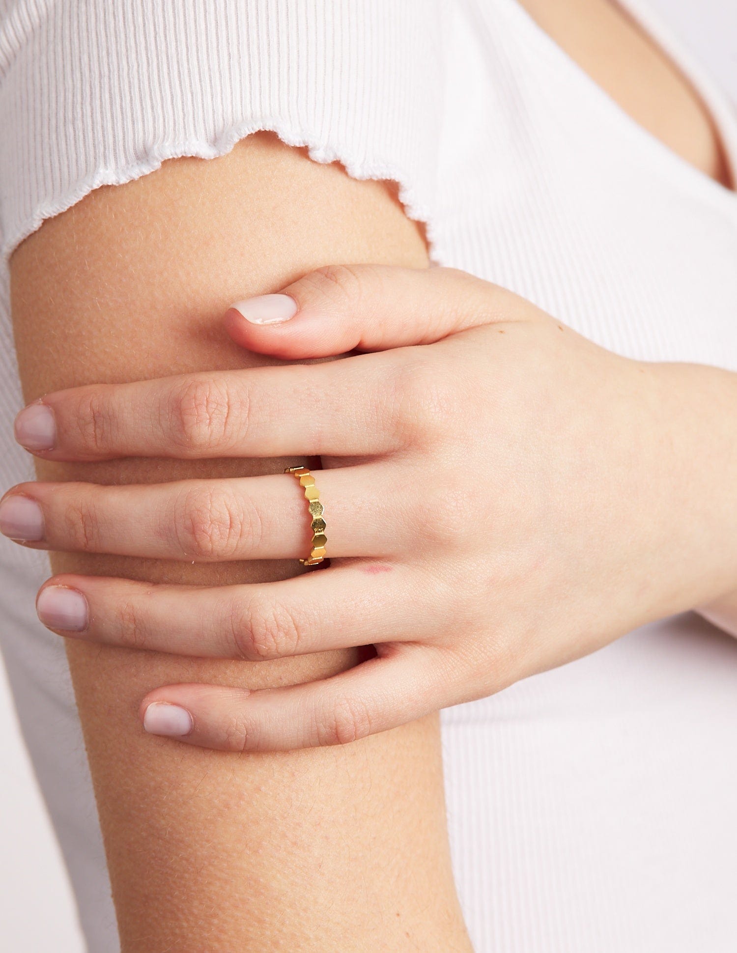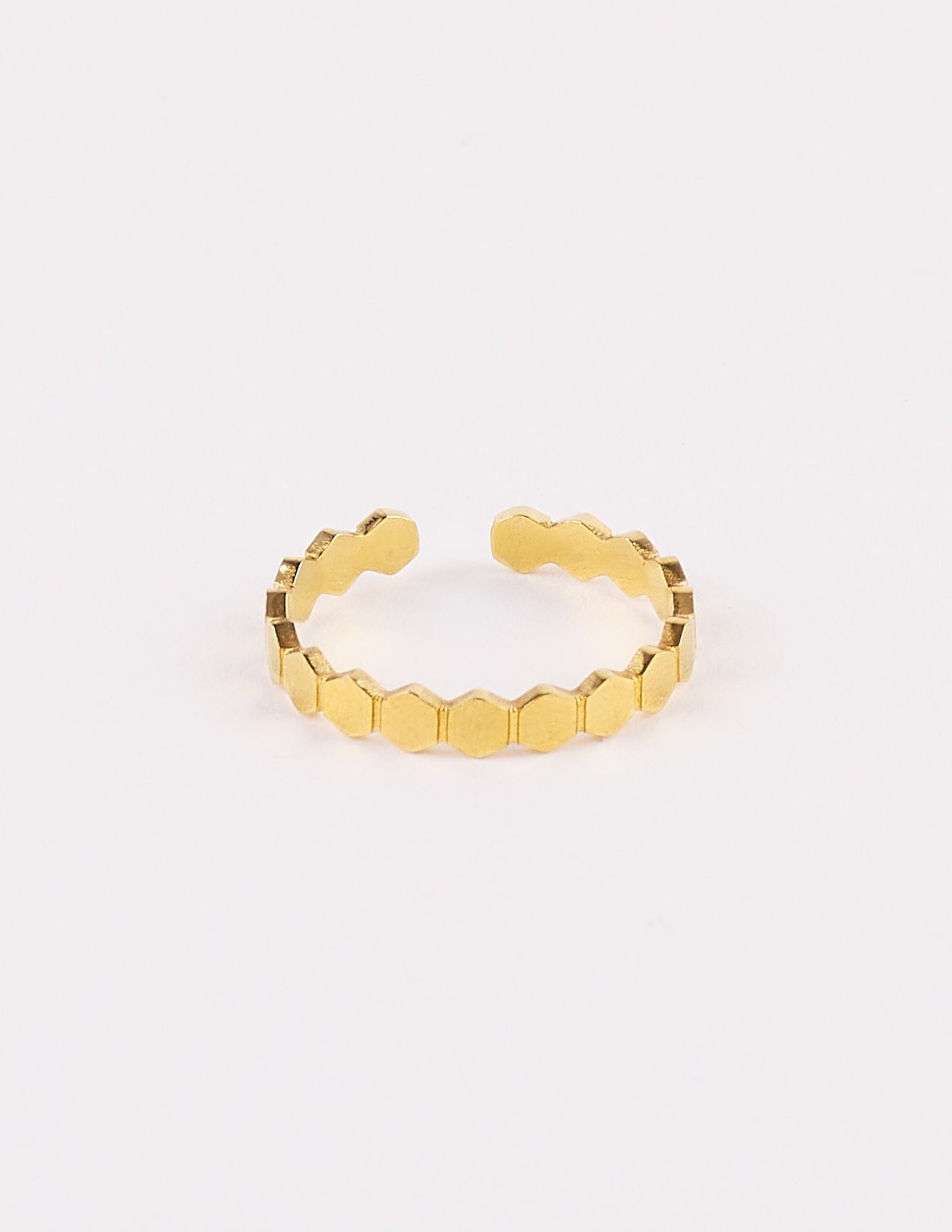 El anillo elegante Berta, tiene formas hexagonales elegante y básico para combinar con varios más en el mismo dedo, como por ejemplo nuestro modelo de anillo Celia.