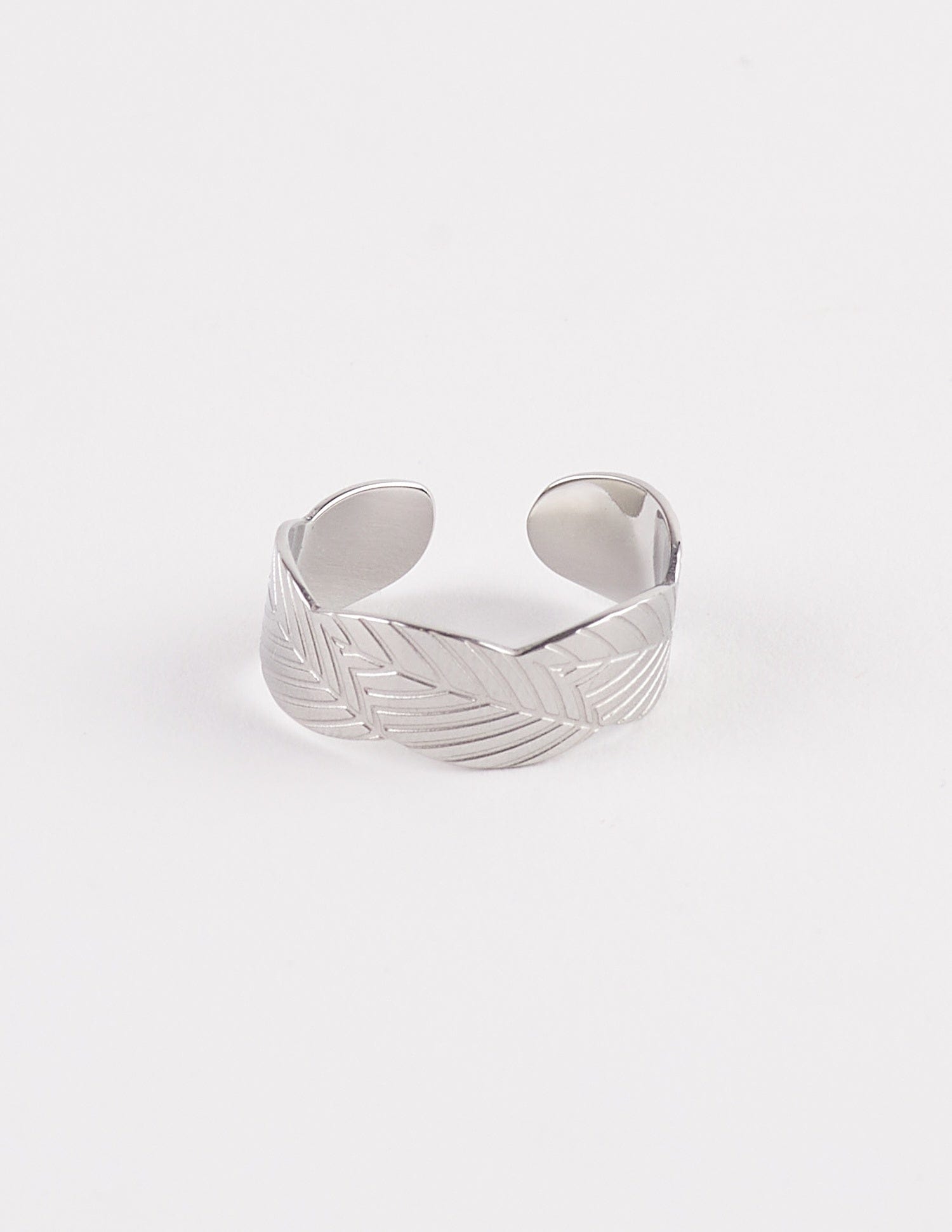 El anillo plateado Livia es un anillo con una hoja entrelazada, que te enamorará