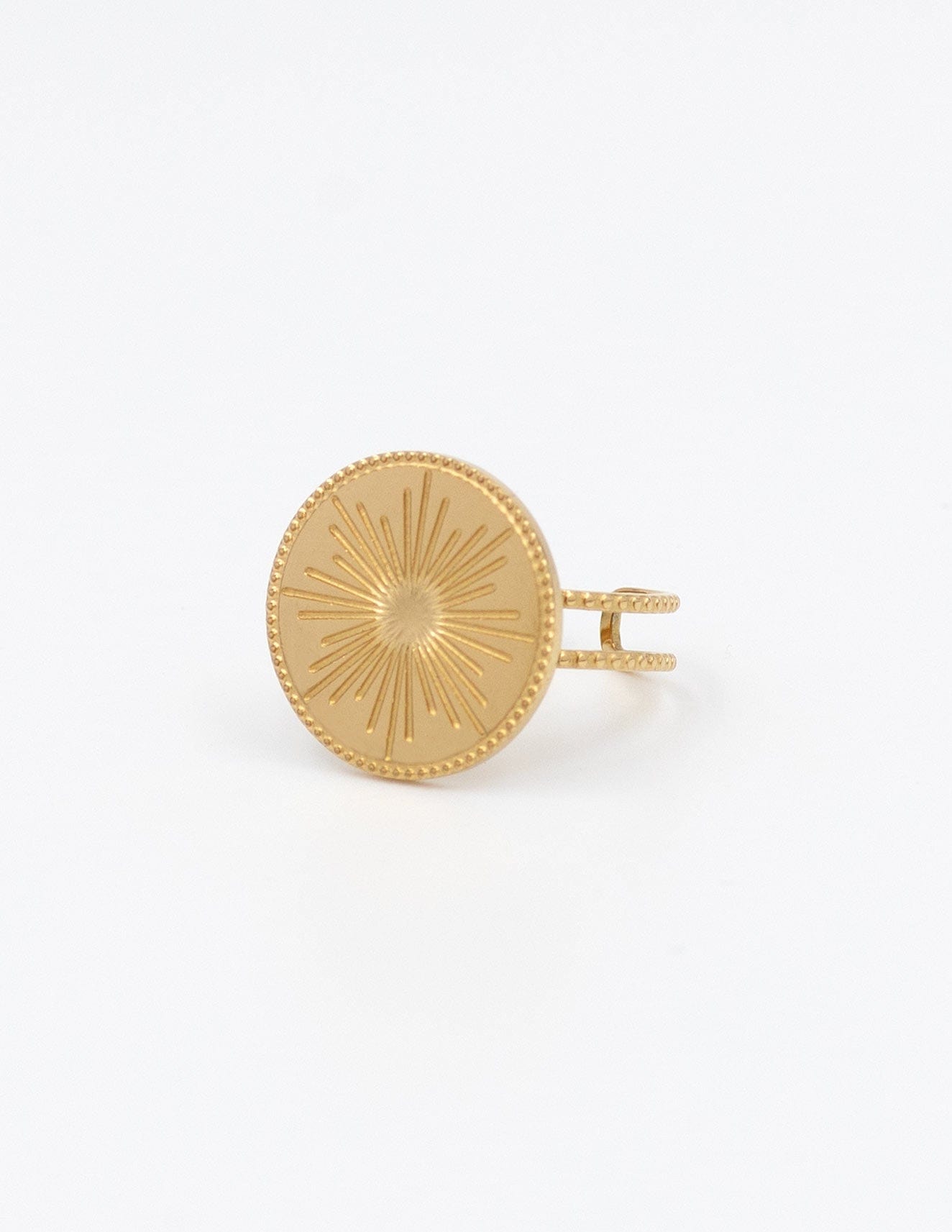 El anillo de forma de sol Donna, será amor a primera vista, queda espectacular puesto como puedes ver en las imágenes, Es ajustable y waterproof. Combínalo por ejemplo con la pulsera Zinnia.