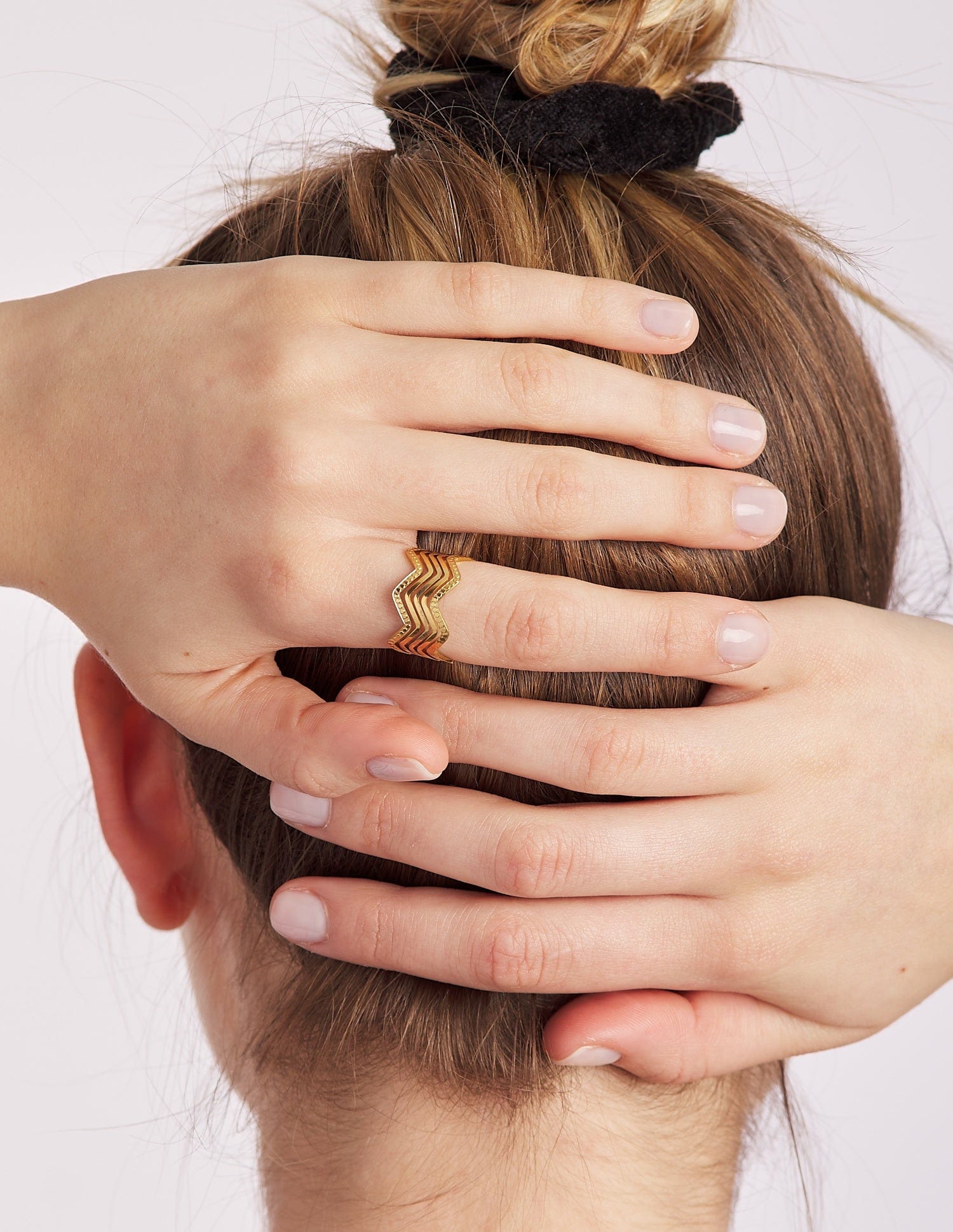 El anillo especial dorado Daniela se ajusta perfectamente a tu dedo y tiene una forma única e inigualable.