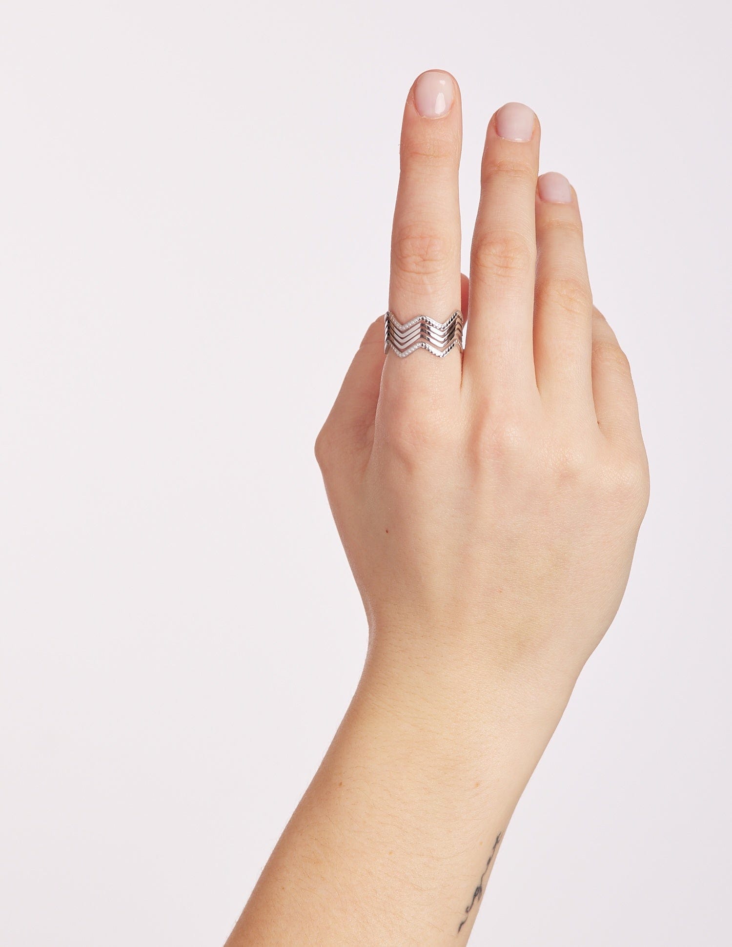 El anillo con forma de zigzag Laura es una pieza con mucha personalidad , la magia de la cual reside en el juego de sus formas.