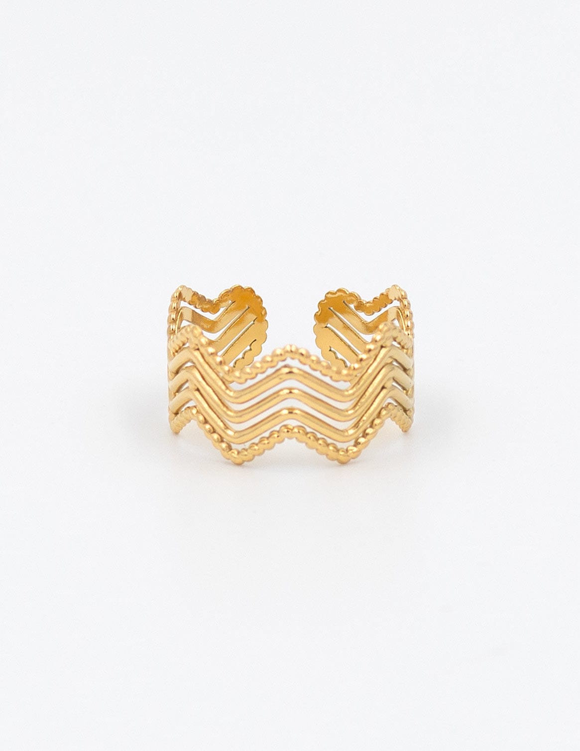 El anillo con forma de ZigZag Giordana se ajusta perfectamente a tu dedo y con forma que hace en zig-zag lo hace una pieza única e inigualable. Queda ideal para llevarlo solo o combinado. Nosotras te proponemos una combi con el anillo Ilaria. Es totalmente resistente al agua y reemplaza a nuestro anillo Daniela (un modelo similar) que habíais agotado existencias en 0 coma.