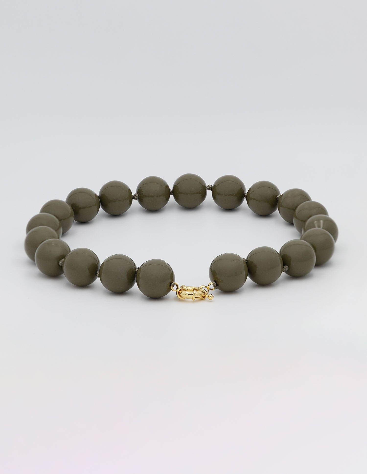 El collar de bolas de resina caqui, transforma un estilo simple en extraordinario. Eleva tu look y con el puesto es pura actitud. Es un collar ligero, con una resina brillante y perfecto para dar vida a cualquier look si esfuerzo