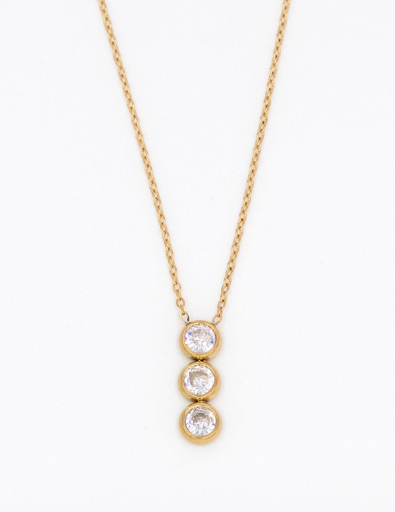 El collar con brillantes Rosalba contiene 3 circonitas redondas en forma alargada, es un collar fino y de los que nos vas a querer quitártelo para nada. Es de acero waterproof por eso puedes mojarlo sin problema, aunque te invitamos a leer en nuestro apartado de Cuidado de las joyas, consejos que os damos. Consideramos que Rosalba es una joya muy especial. Combina este colgante o simplemente llévalo sólo.