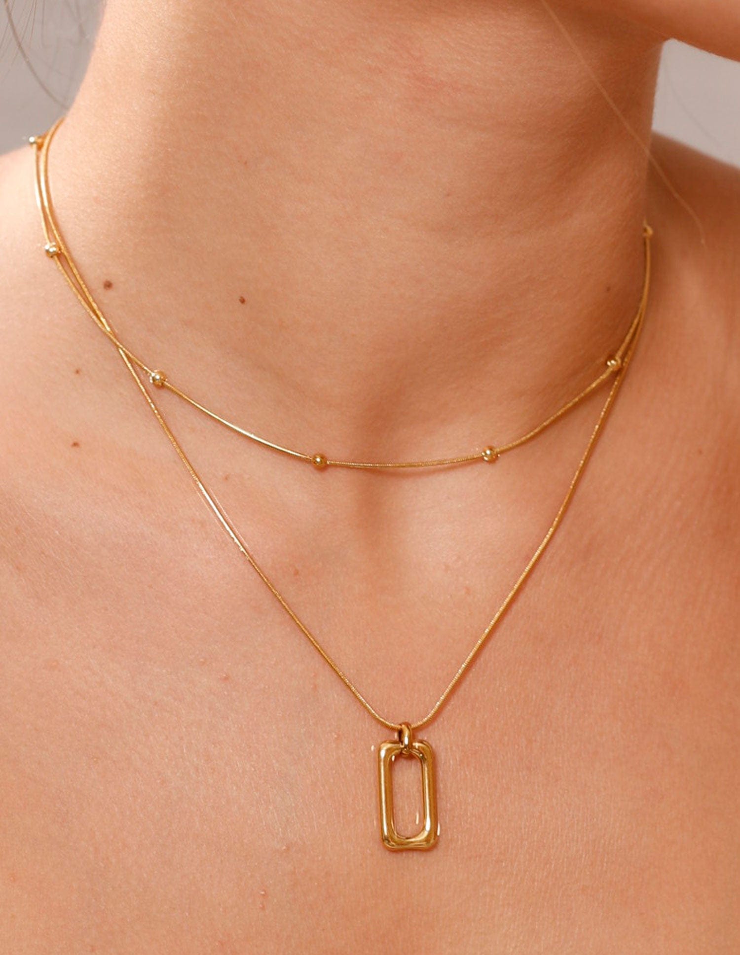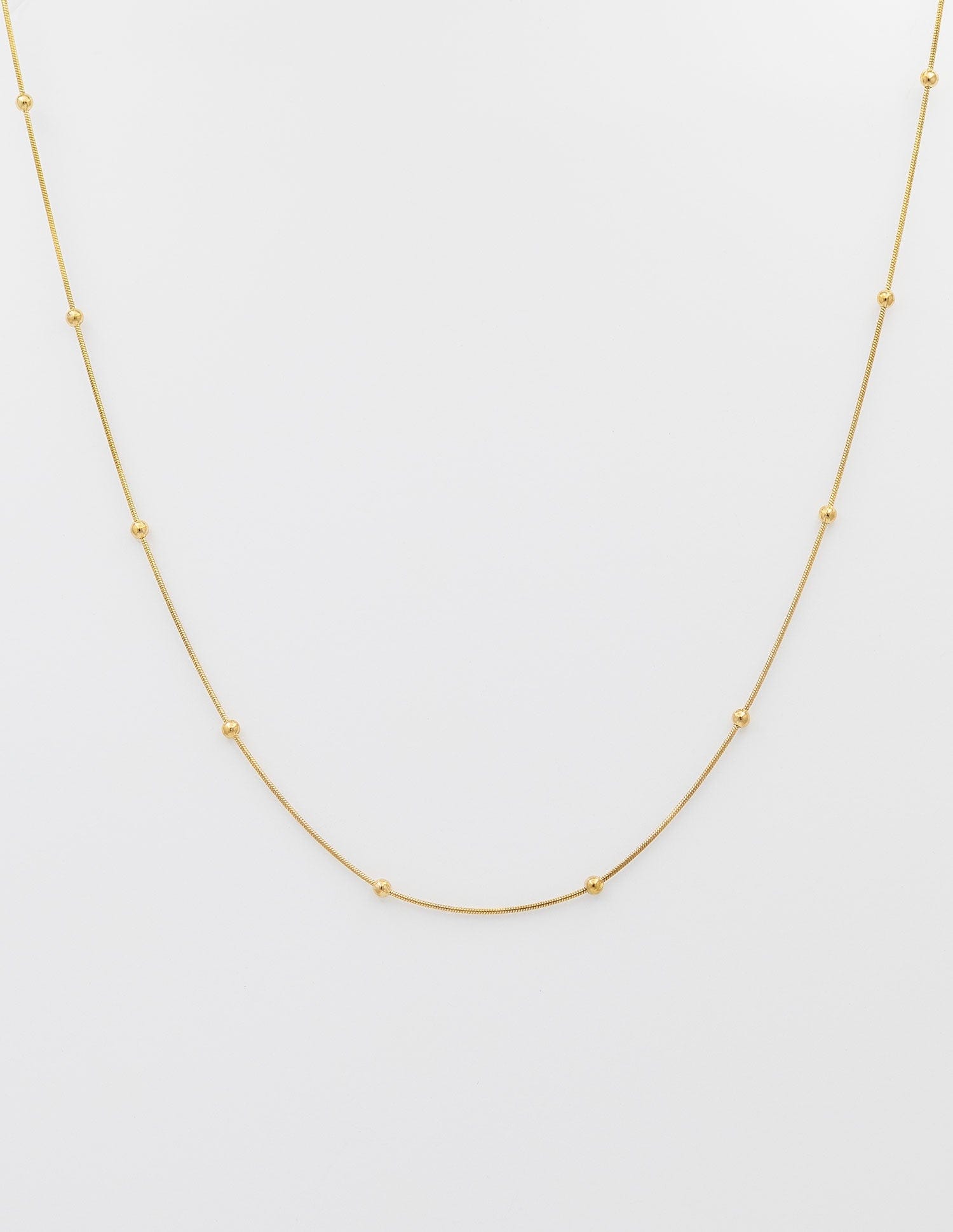 Collar sutil, elegante y siempre en tendencia. Este collar fino dorado de acero inoxidable están diseñados para realzar tu estilo con un toque dorado delicado. Su diseño minimalista convierte esta gargantilla un complemento perfecto para llevarlo solo o combinarlo con cualquiera de nuestros colgantes , o llevarlo con más gargantillas en diferentes alturas, creando un look moderno y sofisticado.