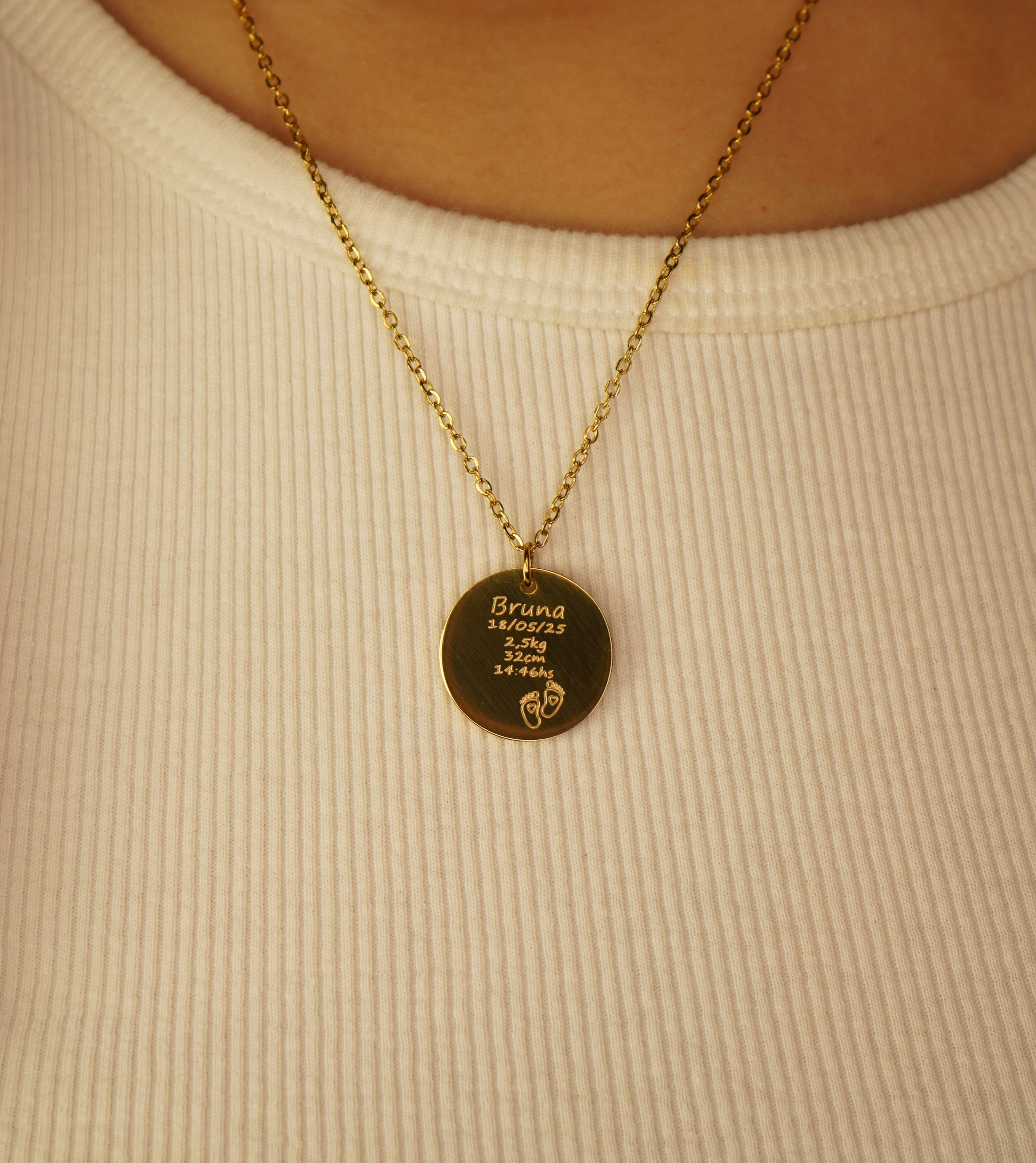 Perfecto para que recuerdes los datos de ese bebé tan deseado. Este collar se convierte en un recuerdo eterno que puedes llevar siempre contigo.