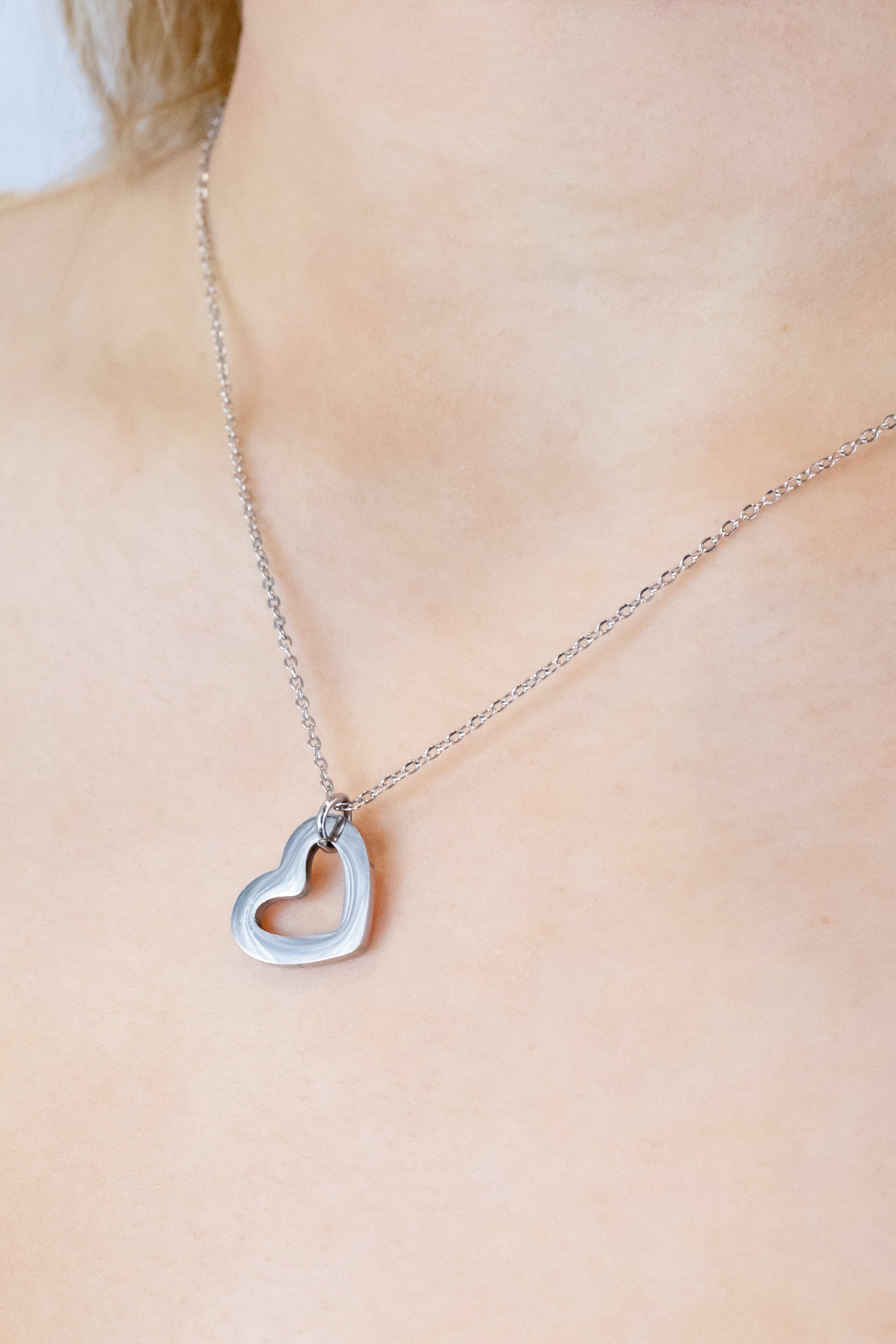 El collar con corazón hueco o vacío por dentro, es perfecto para regalar a esa persona especial cualquier día del año. Díselo todo regalando este collar. Disponible en color dorado. Disponible también más grande . (Collar corazón vacío)