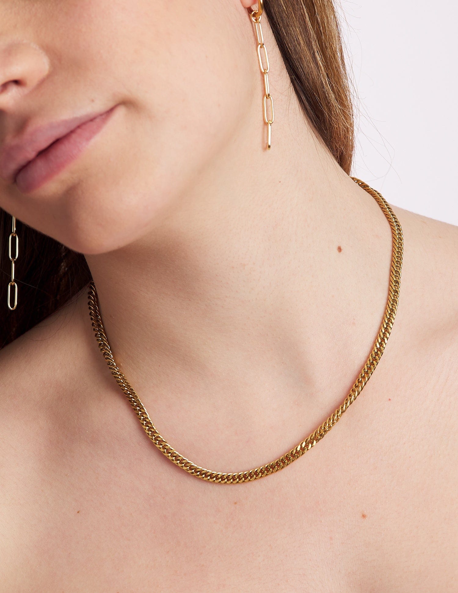 La gargantilla ancha Francina es un collar de eslabones muy juntos el uno con el otro, es original y combinable de varias maneras, es resistente al agua, es un collar llamativo, atrevido y a la vez ideal para cualquier ocasión.
