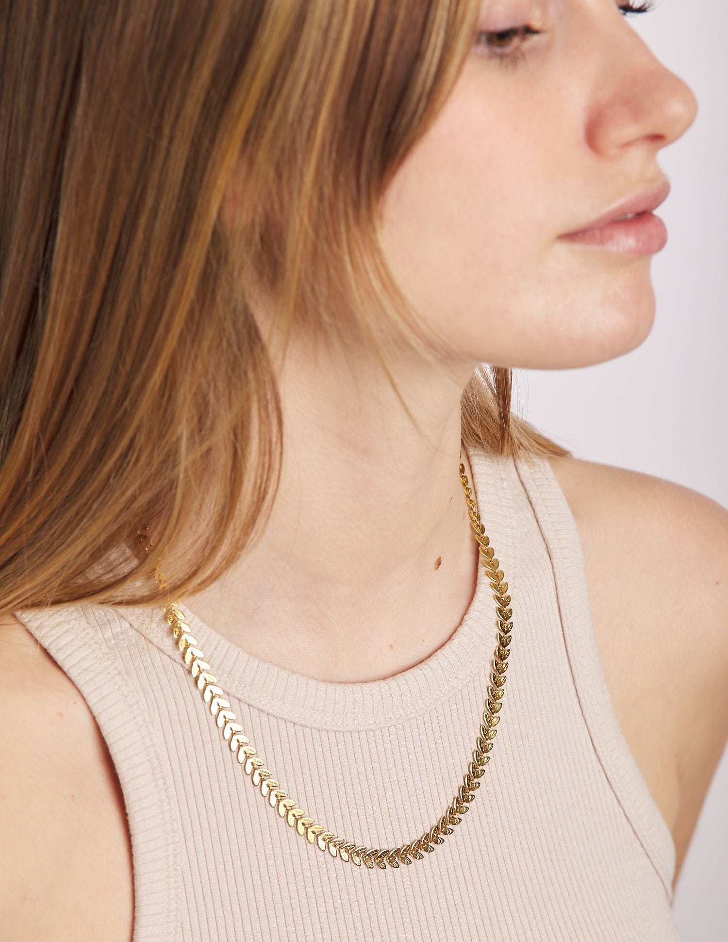 El collar Aitana con forma de espiga es tan elegante que vas a querer lucirla con tus mejores looks.