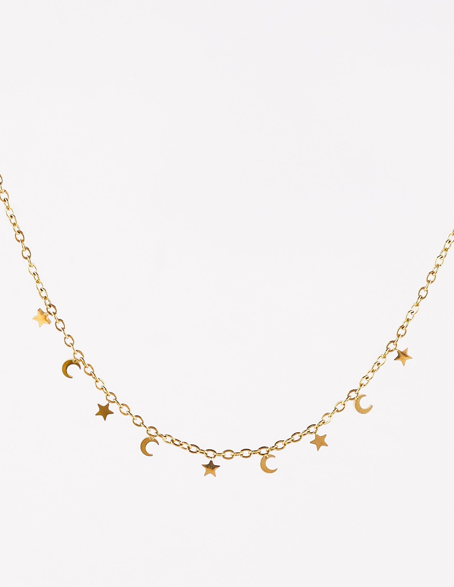 El collar Nina es un collar super bonito y original compuesto por una cadenita fina que lleva estrellitas y lunitas súper pequeñas.