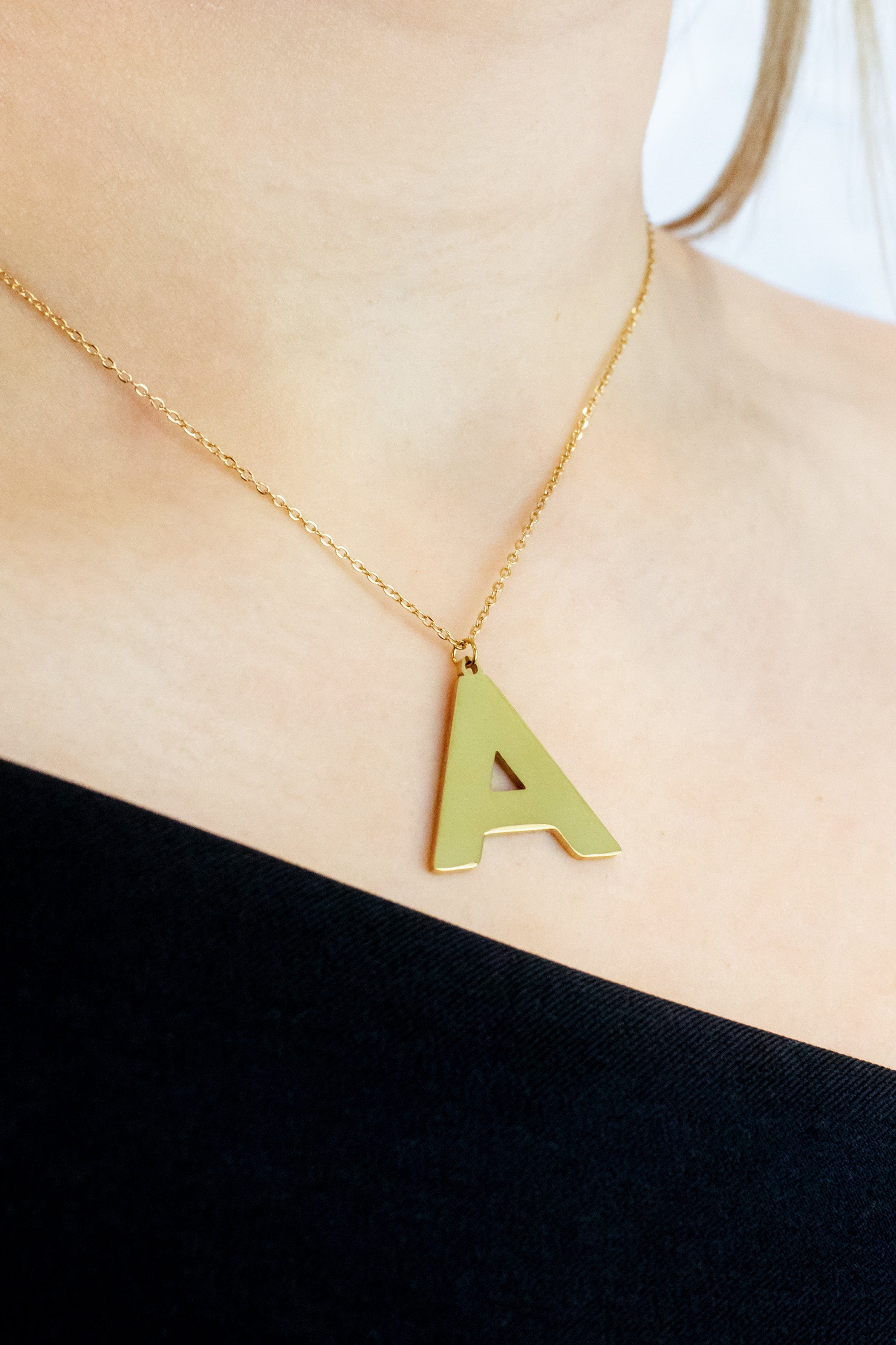 El collar con inicial grande dorado es uno de los collares con más demanda, tiene medidas para jugar con las alturas. Escoge tu letra y cualquier duda ponte en contacto con nosotras.