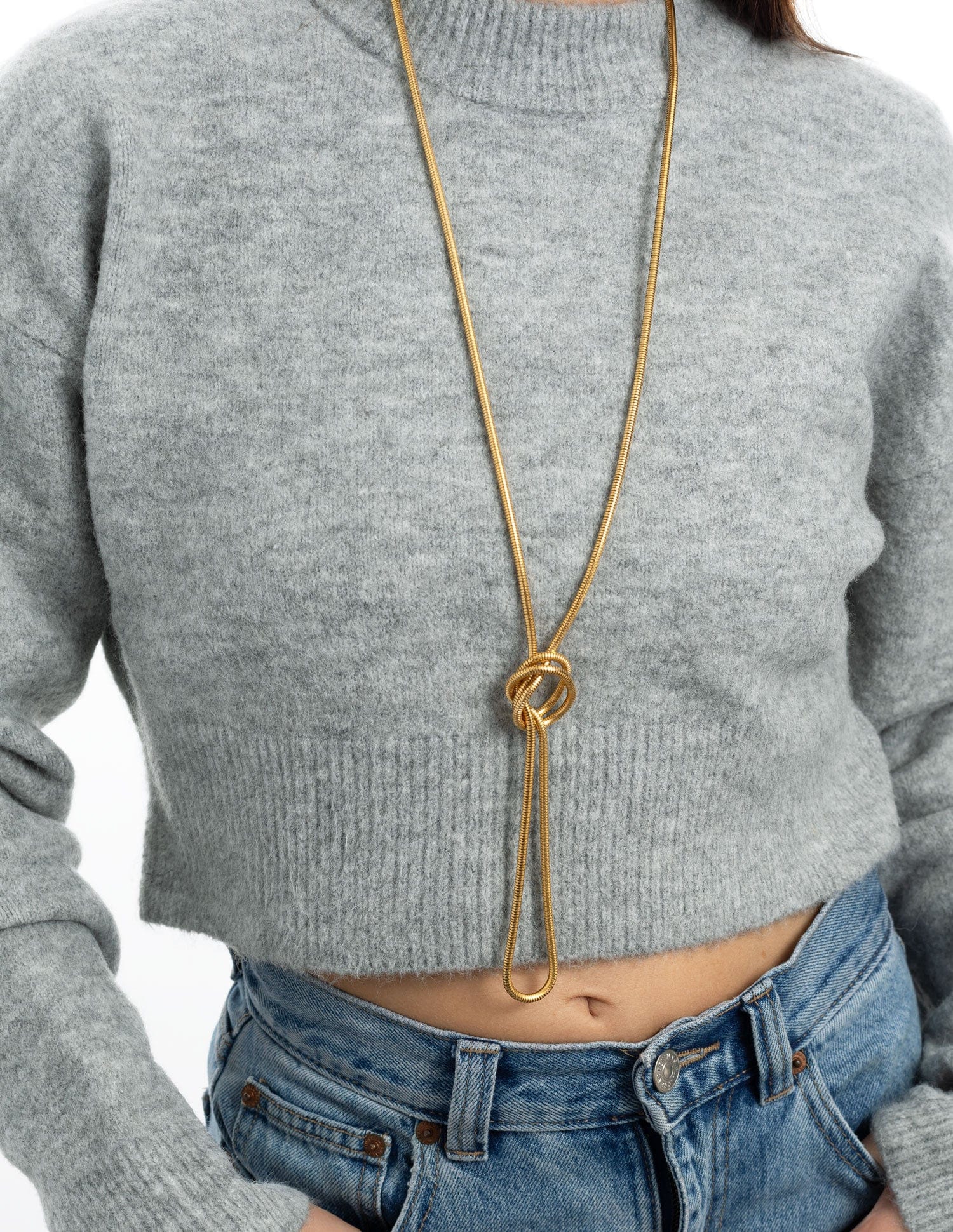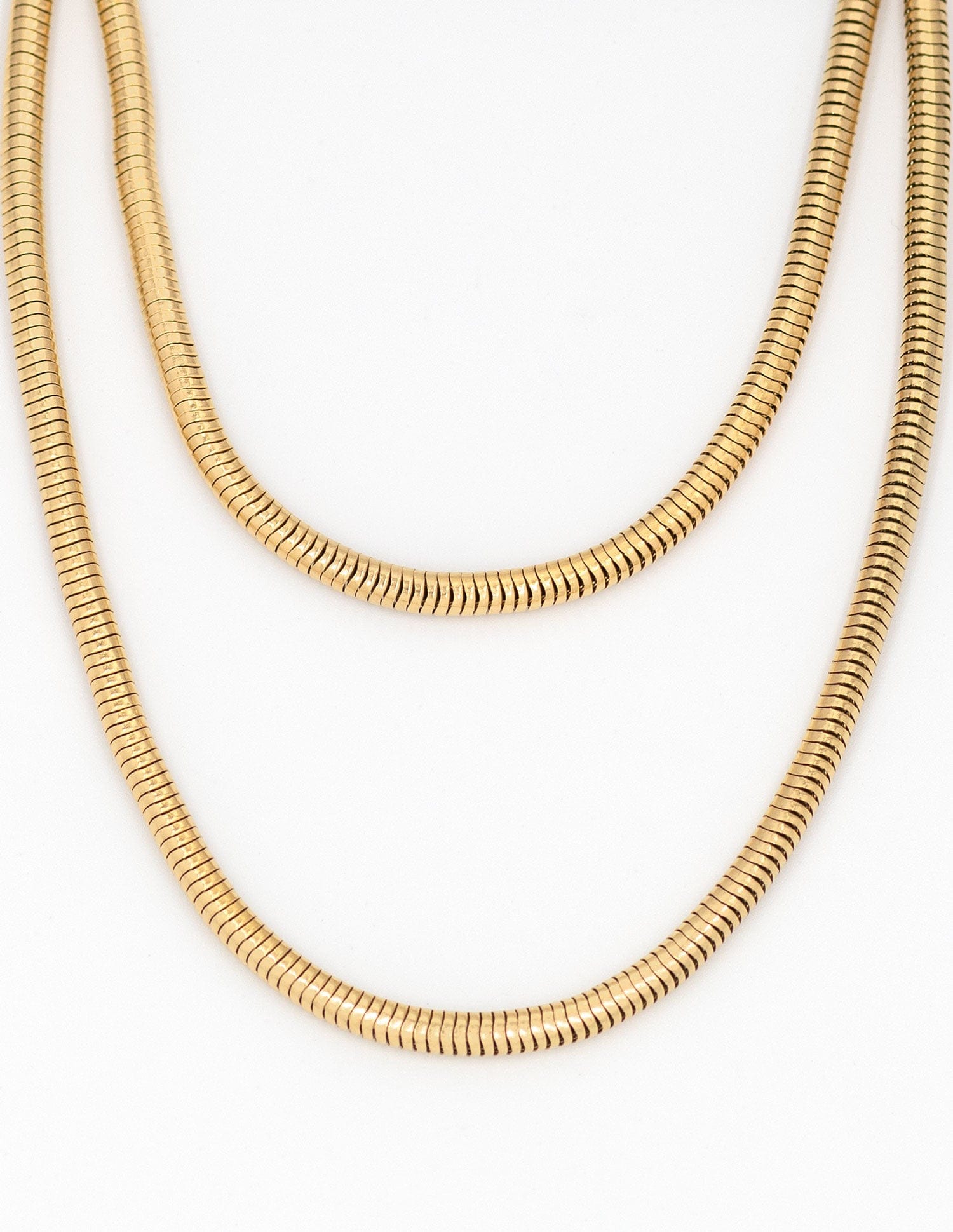 El collar Anneta es tipo cordón, simulando la serpiente, extra largo. Es tan versátil que te costará decidir de qué manera llevarlo, por eso te enseñamos algunas opciones, doble, con nudo, simple, o combinado con otros collares. Lo podrás lucir con diferentes escotes o cuellos altos. Es el más largo de nuestra colección, lo vas a querer para ti y regalárselo a esa persona especial que sabes que le encantará!
