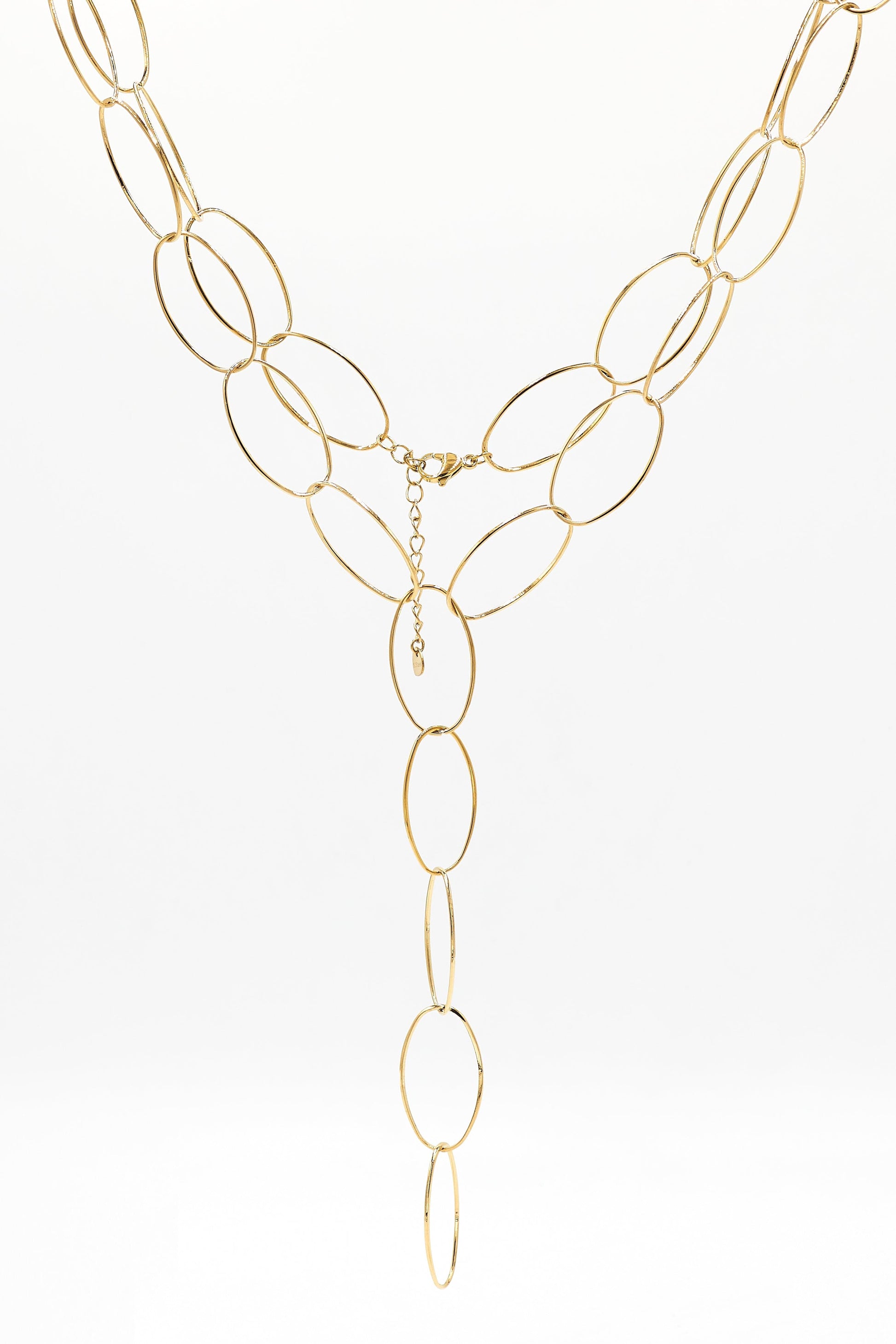 El collar largo Maëlle es un must esta temporada, es un collar versátil que podrás lucirlo con tus mejores escotes o con un cuello alto. Es un collar de acero regulable a la altur que quieras ya que lleva eslabones grandes en forma de óvalo. Lo vas a querer regalar y quedarte uno para tí también. No dejes de pispear el formato pendiente que quedan preciosos, se llaman Lana.
