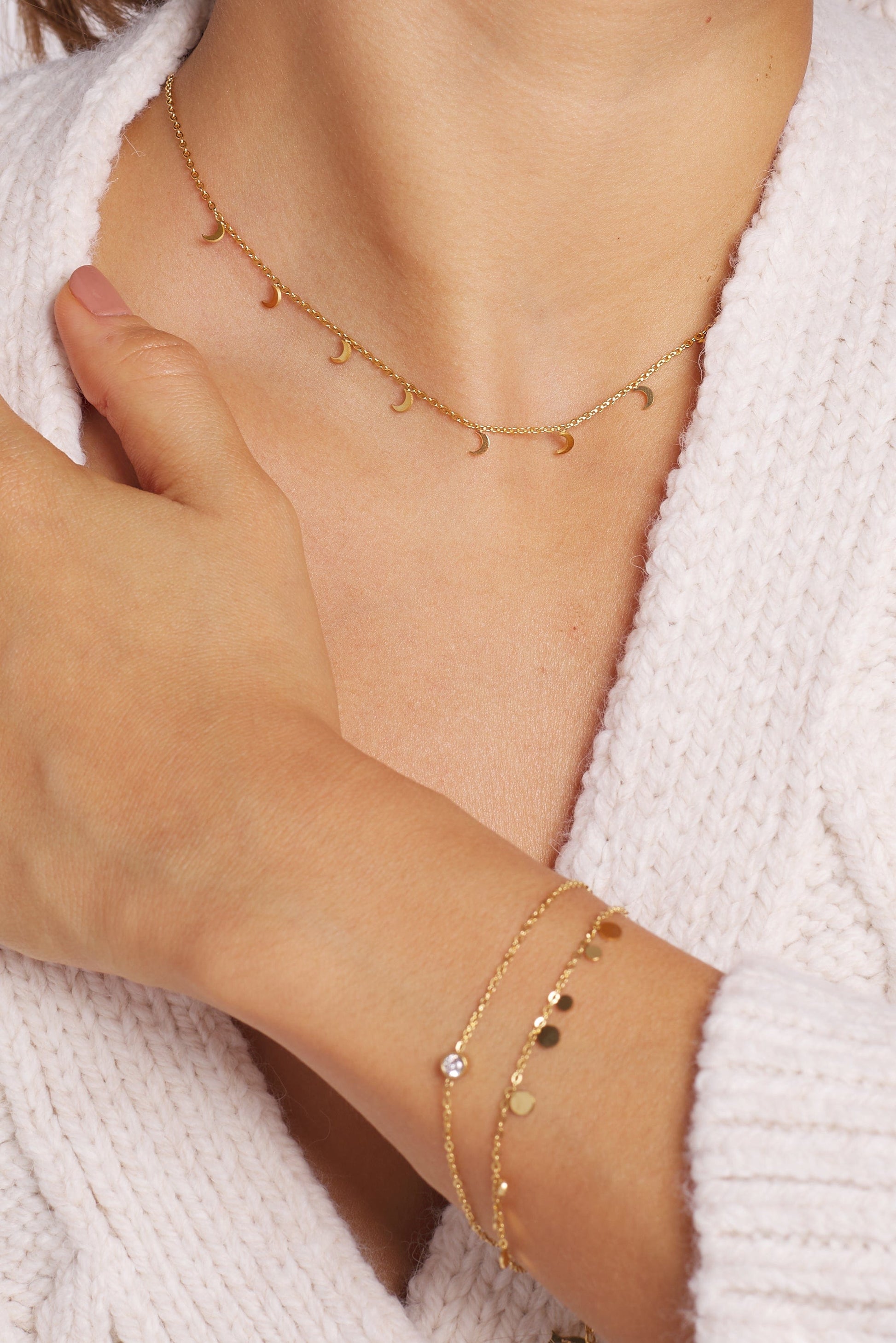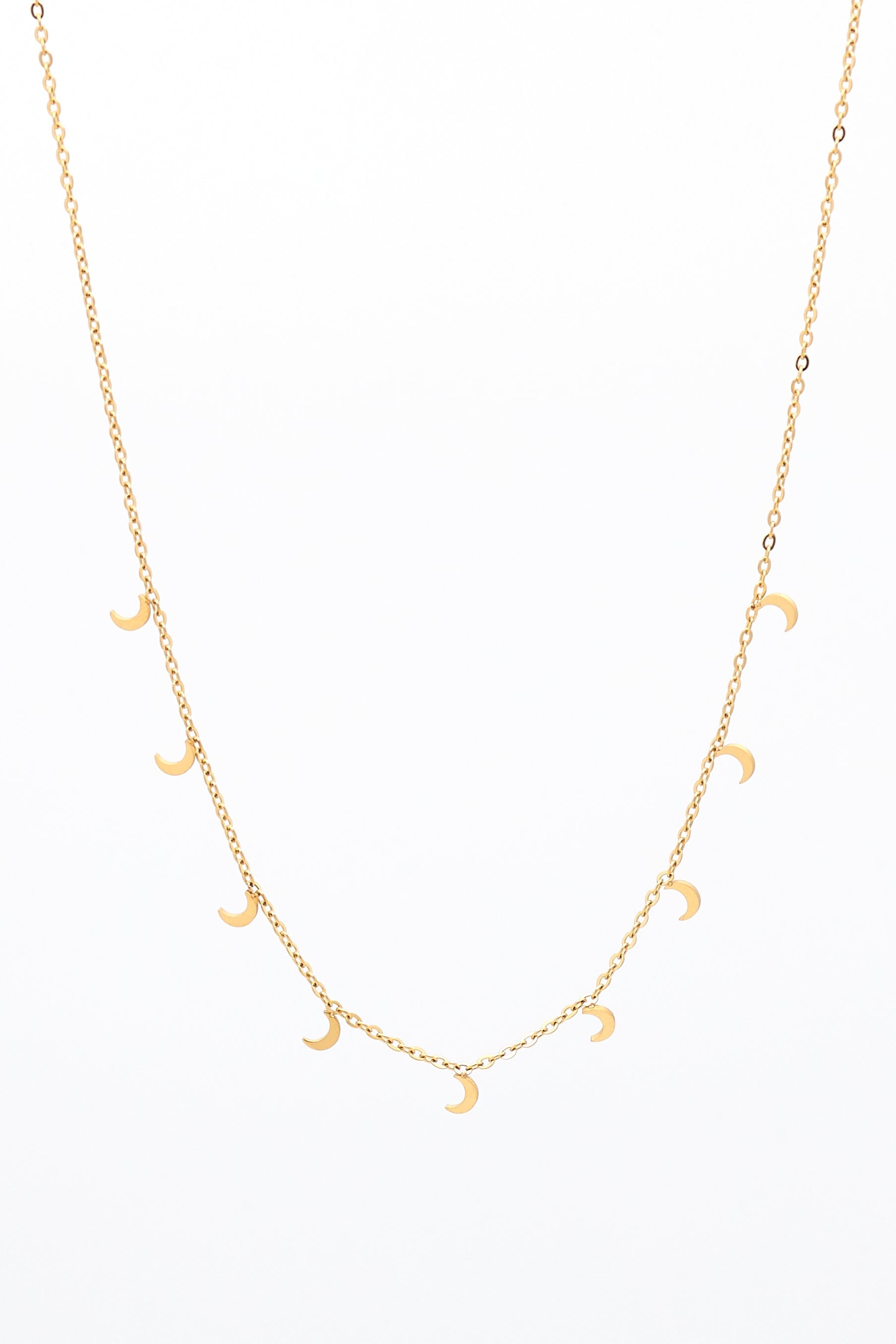 El collar Maëlan es un collar con mucha energía, está formada por mini lunas de acero inoxidable . Este collar de lunas es sencillo pero súper original, tienes infinitas combinaciones con él, por ejemplo con nuestro colgante de inicial Magalí.