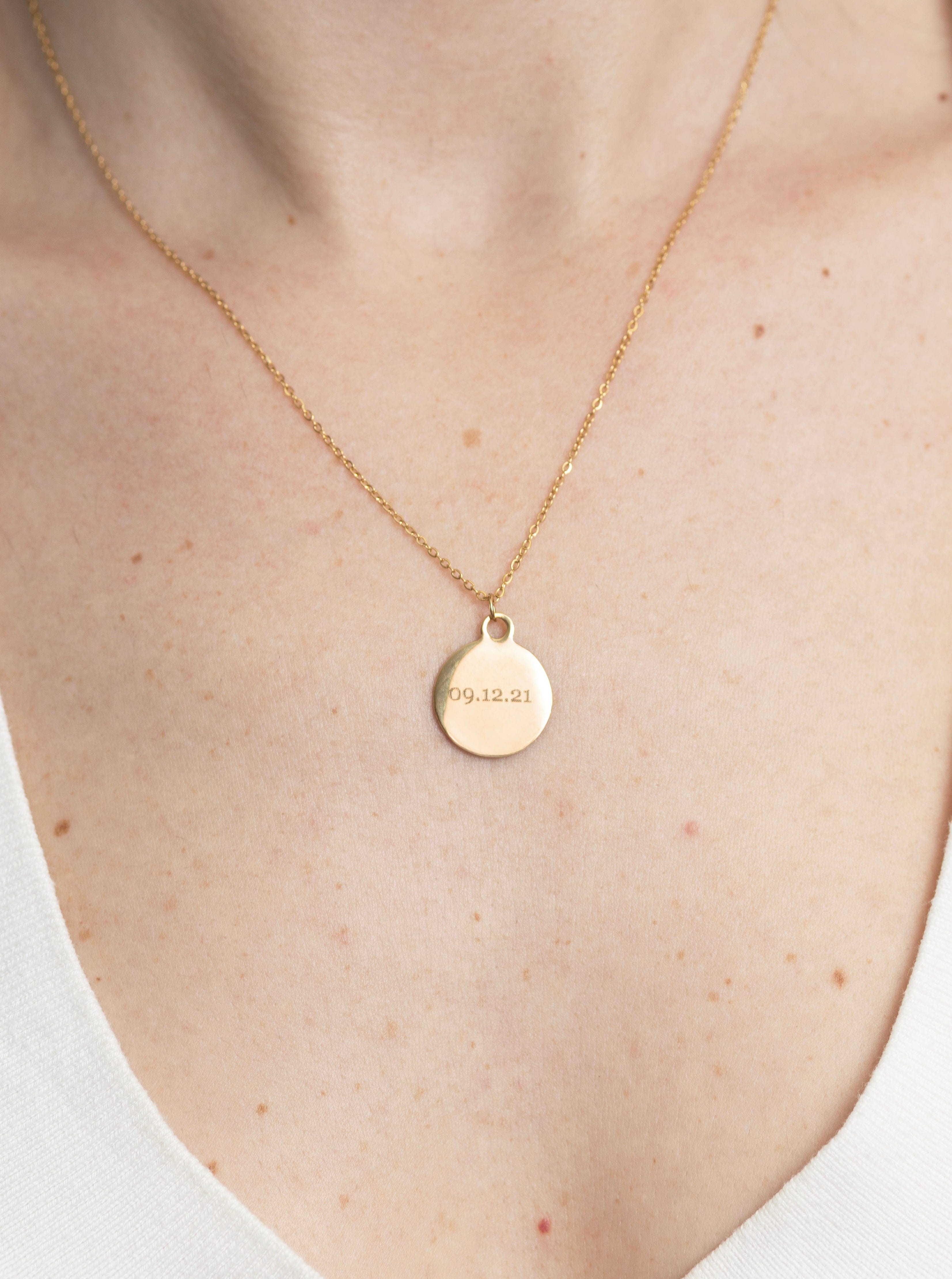 El collar personalizado medalla es ideal para grabar nombre, inicial, fecha o da juego a grabar lo que más desees, puedes llevarla sola o combinarlos con otros charms y/o gargantillas.