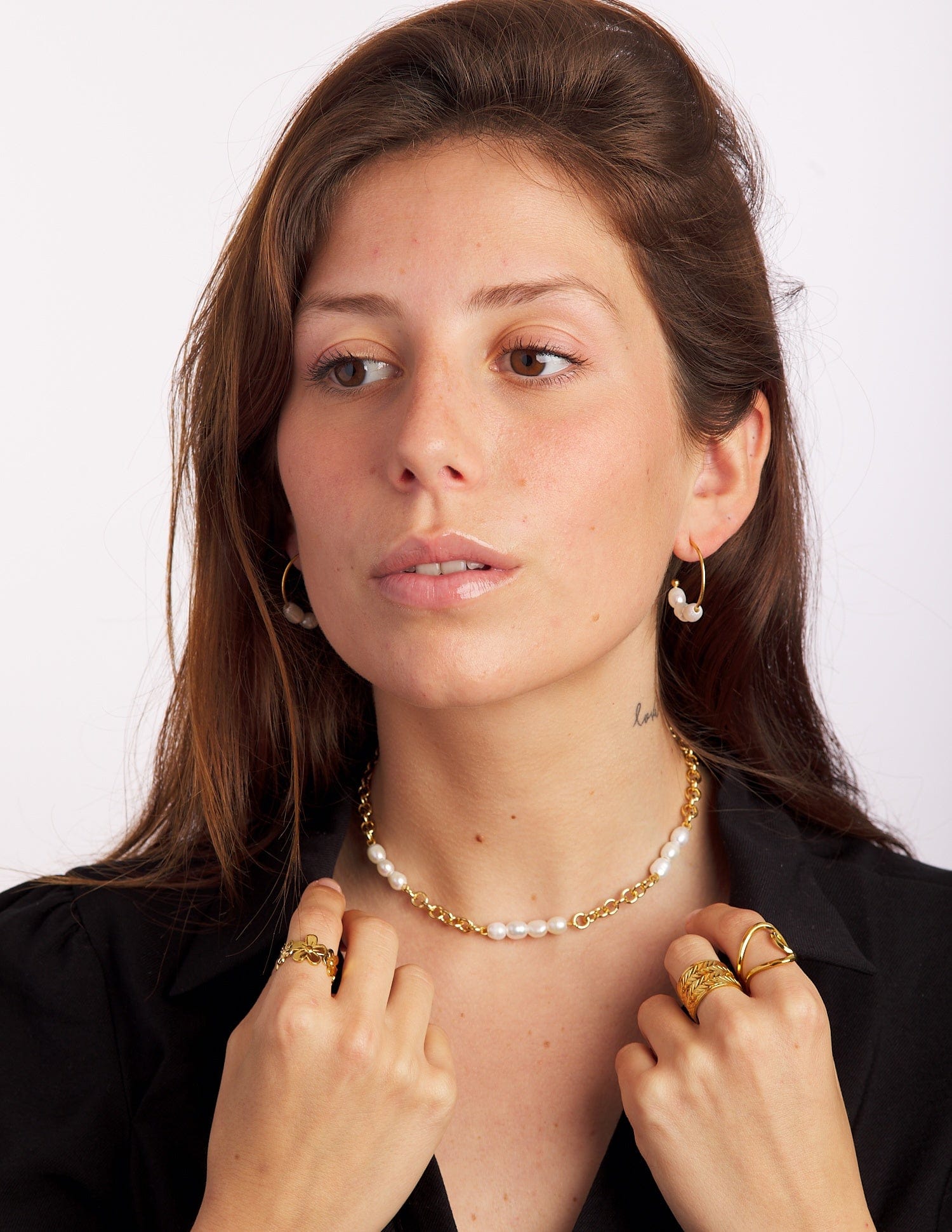 El collar Sabrina es pura dulzura, consta de varias anillas unidas entre sí, por eso puedes jugar mucho con la altura que quieras.