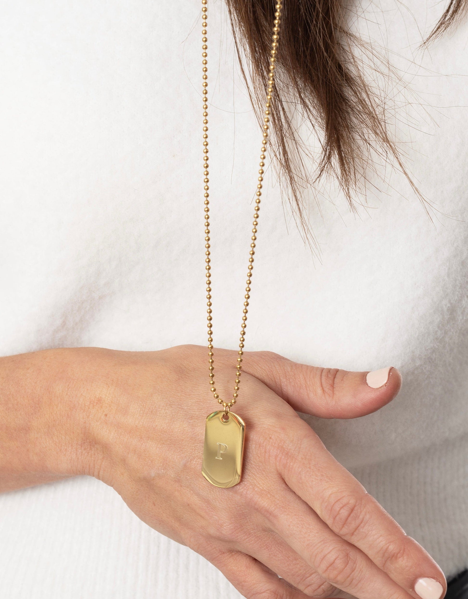 El colgante con placa cadena bolitas dorado personalizado es un joya preciosa para regalar o regalártelo a ti mism@.