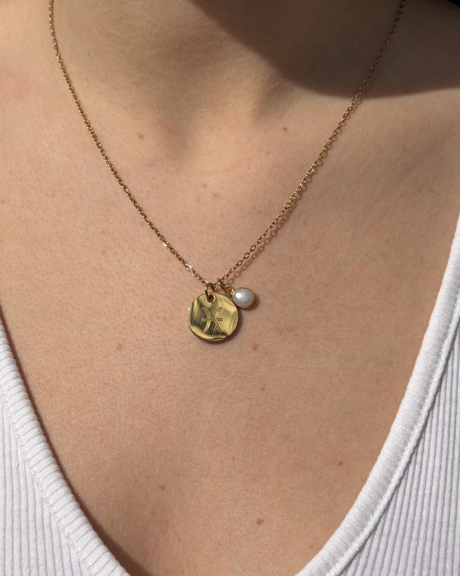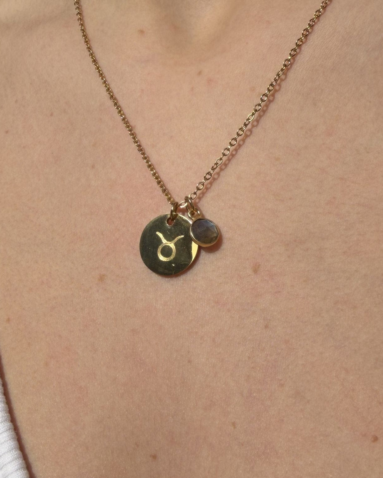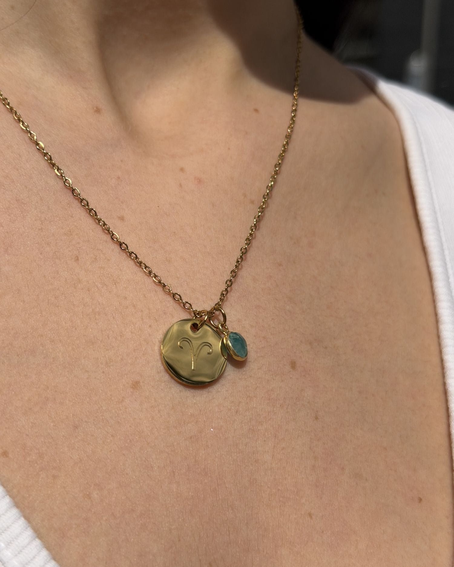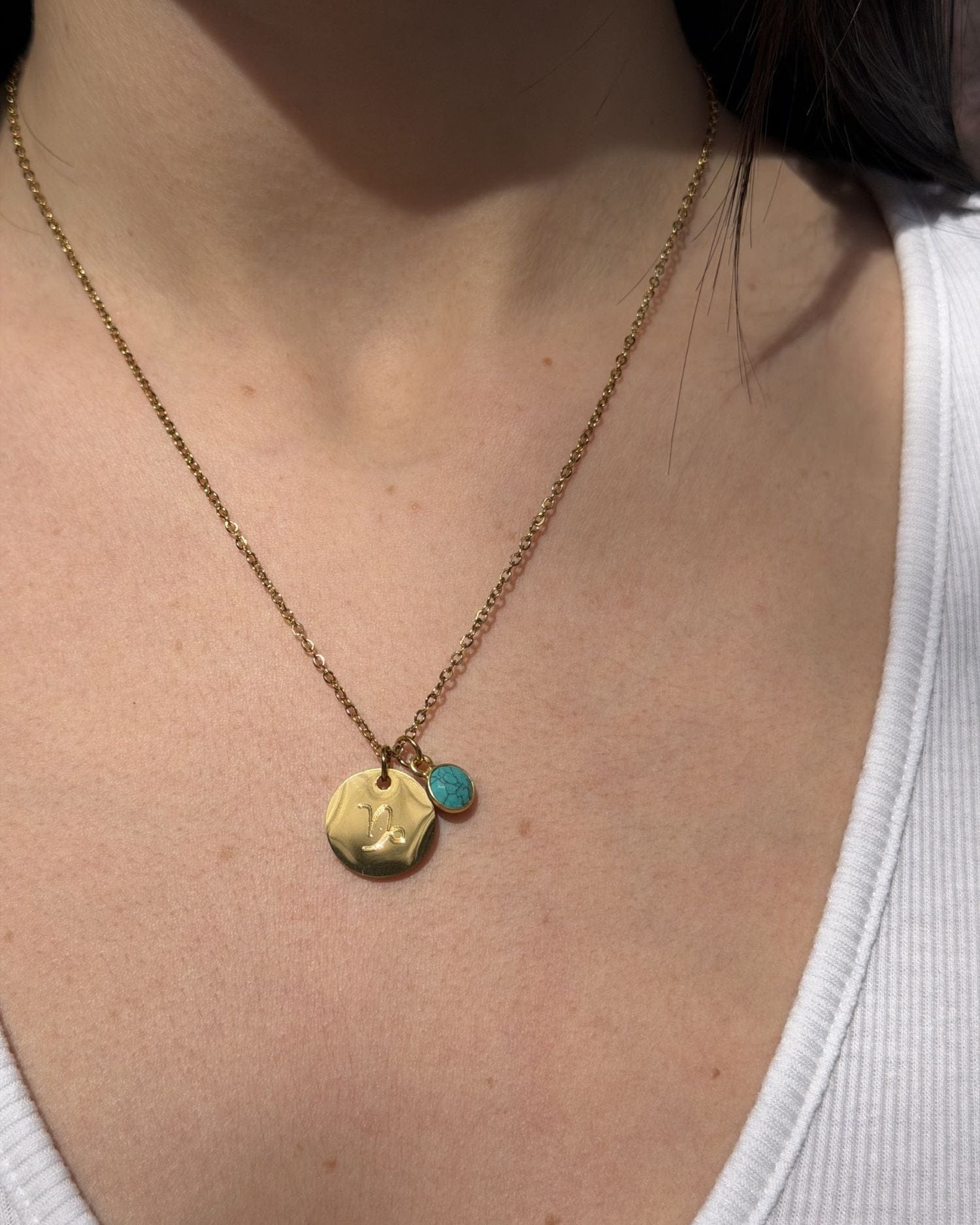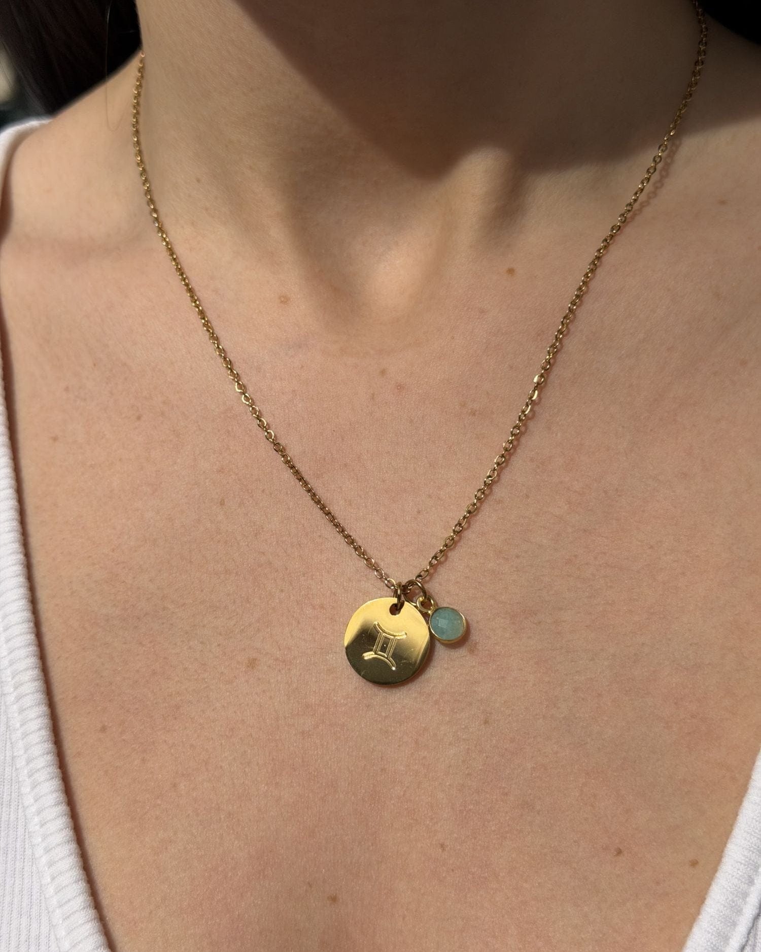 Este collar fino con piedra natural y medalla personalizada combina la durabilidad del acero inoxidable con un toque personal y único.