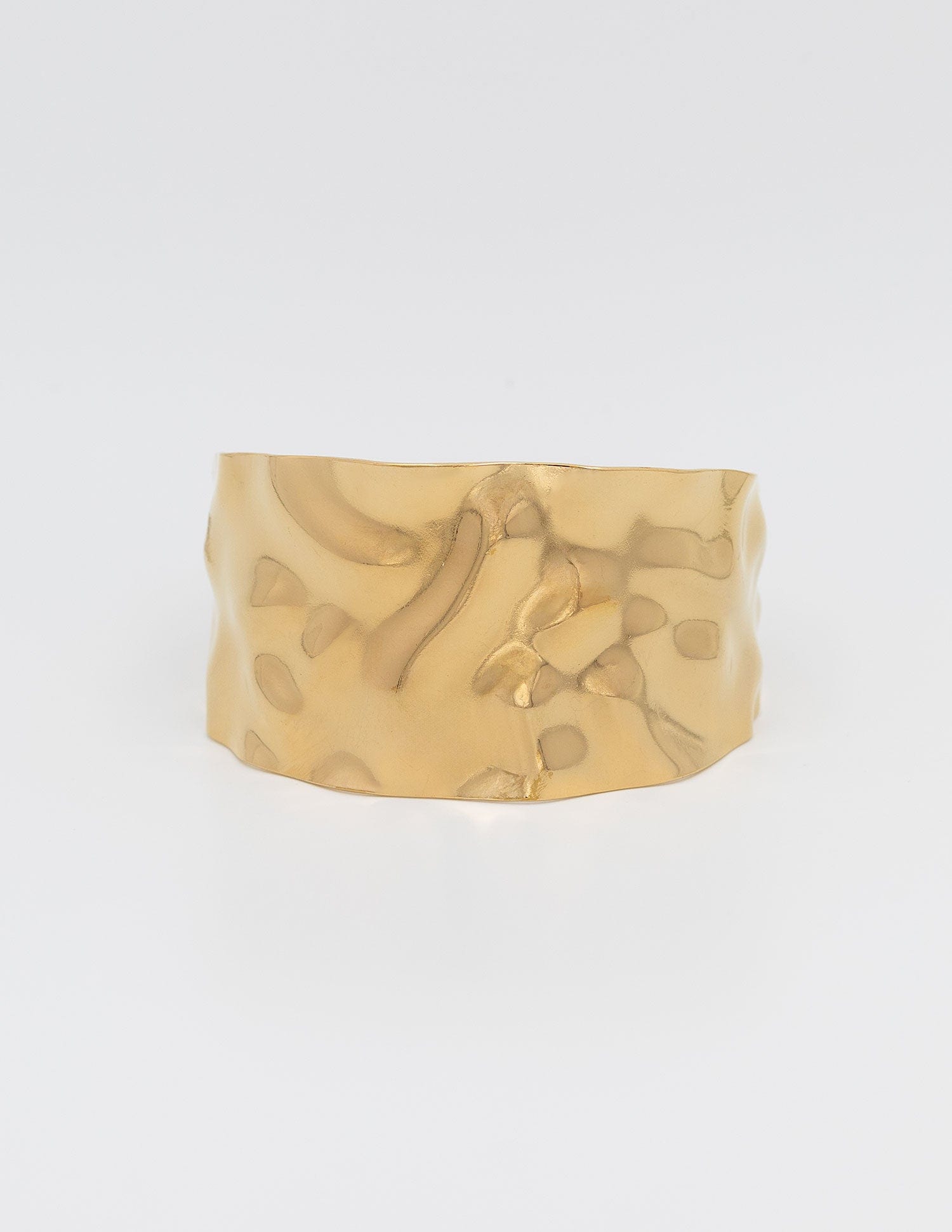 Brazalete rígido martillado irregular con un acabado orgánico y lleno de movimiento, esta esclava aporta fuerza y estilo a tus looks. Su textura brillante y rugosa la convierte en una joyita llamativa y especial. Se adapta muy bien a la muñeca o ante brazo.