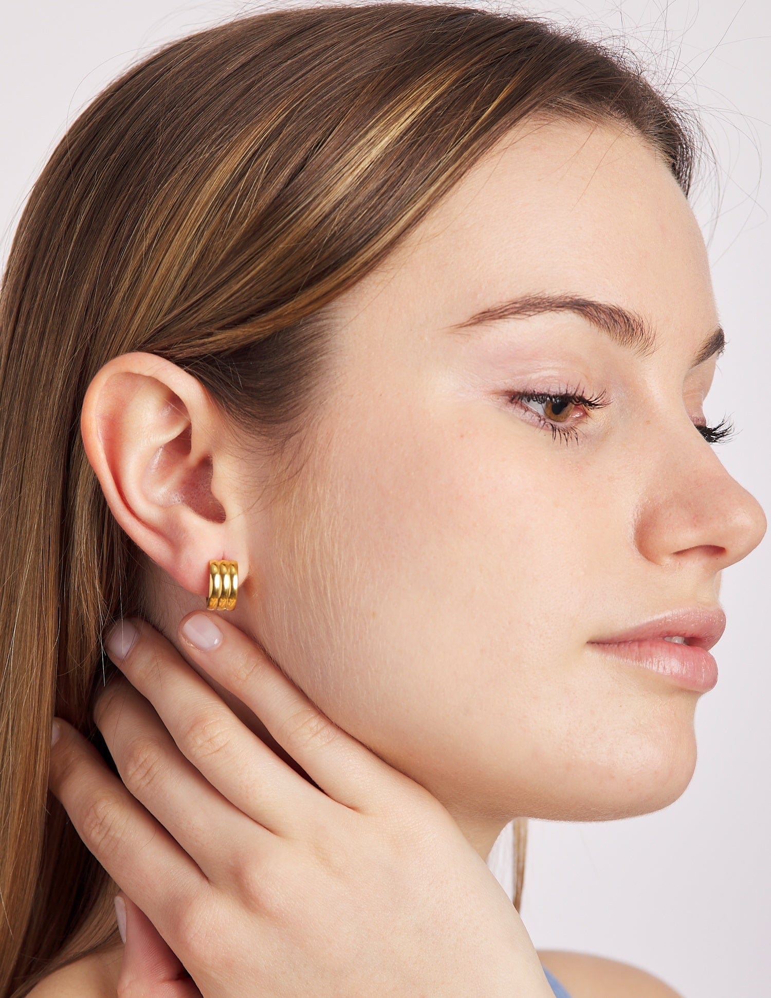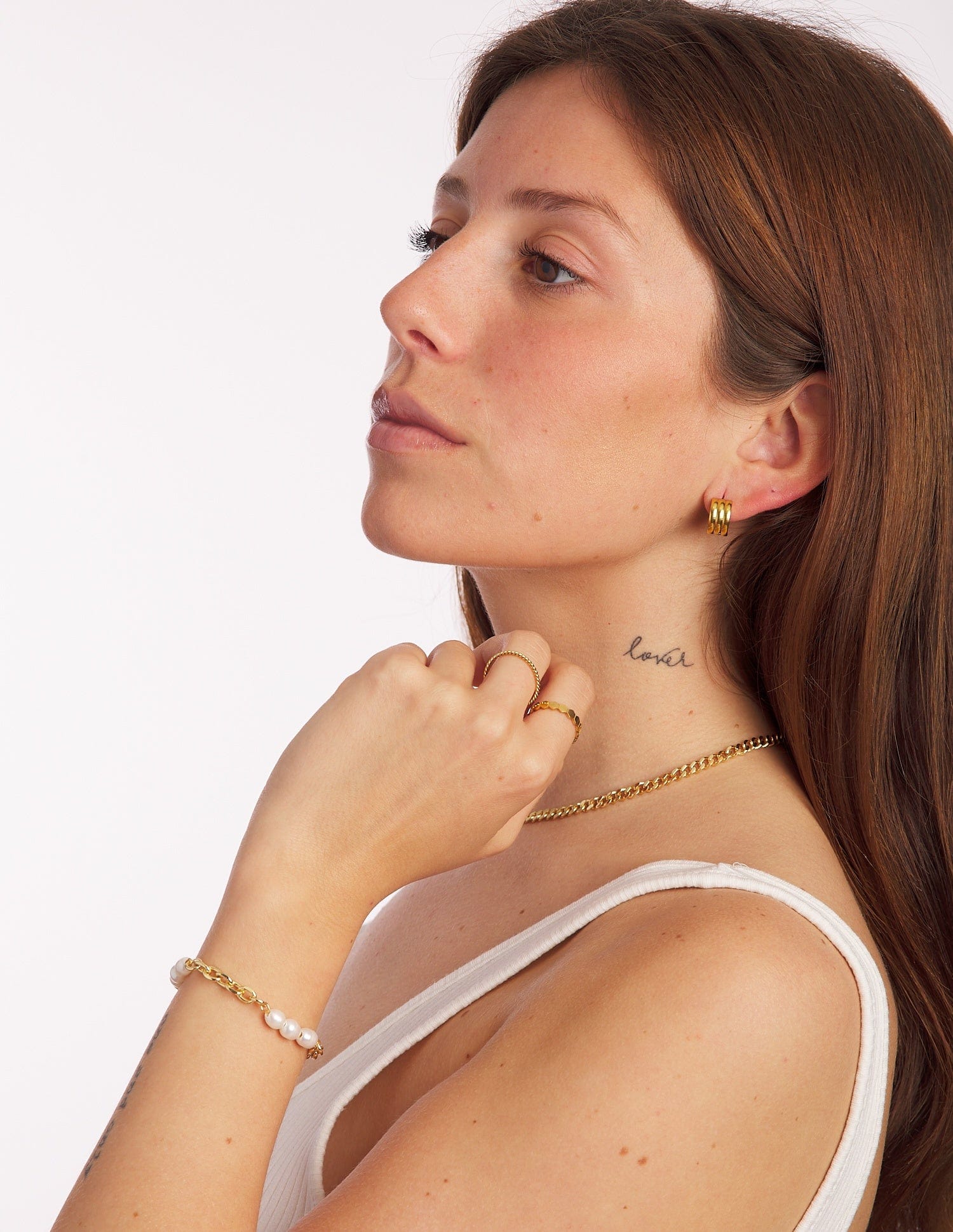 Los pendientes Patricia son de lo más originales, perfectos para los primeros agüjeritos y combinarlos con otros sin problemas, por su versatilidad y forma ancha. Este modelo de aros Patricia son de acero color oro y te van a encantar puestos!.