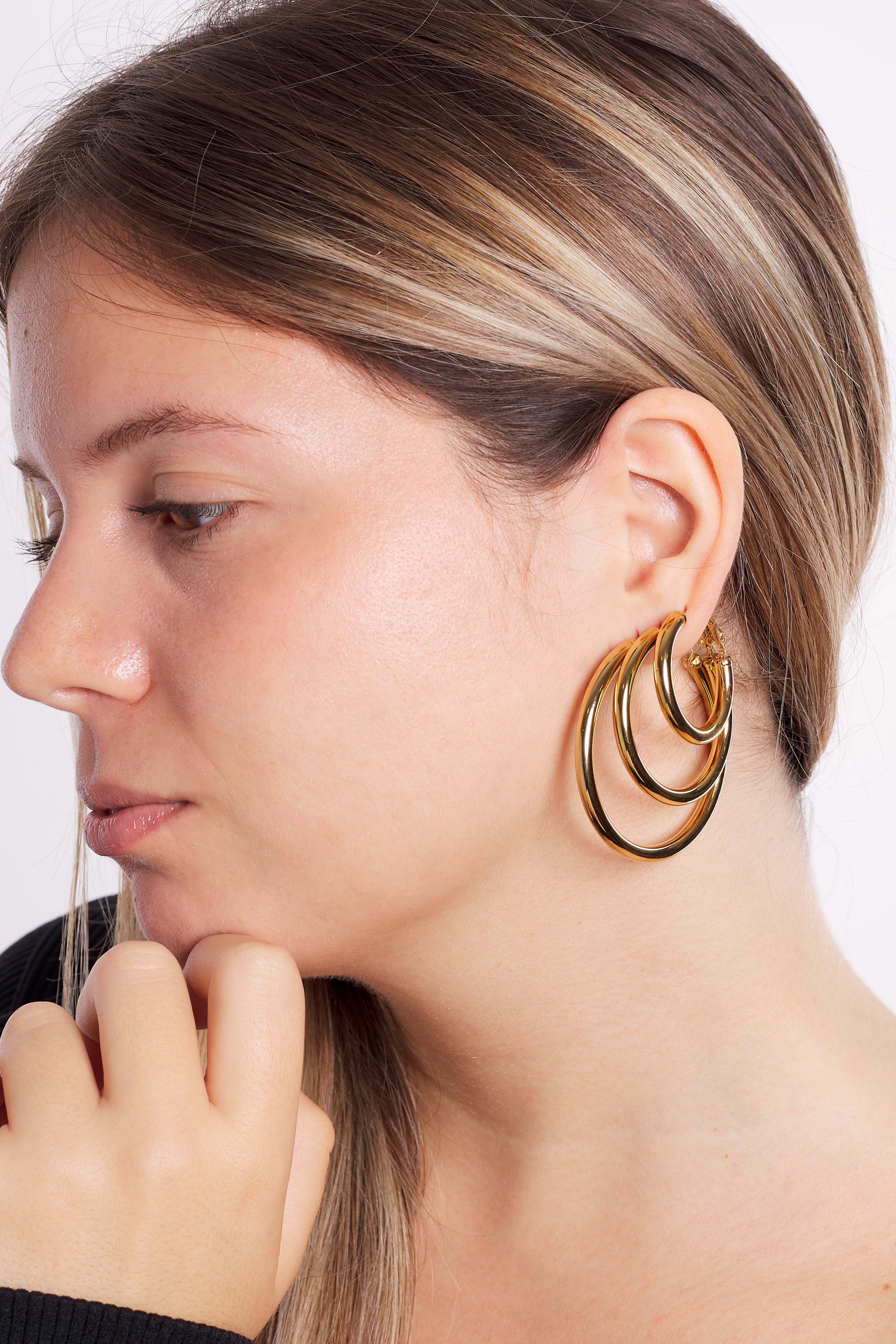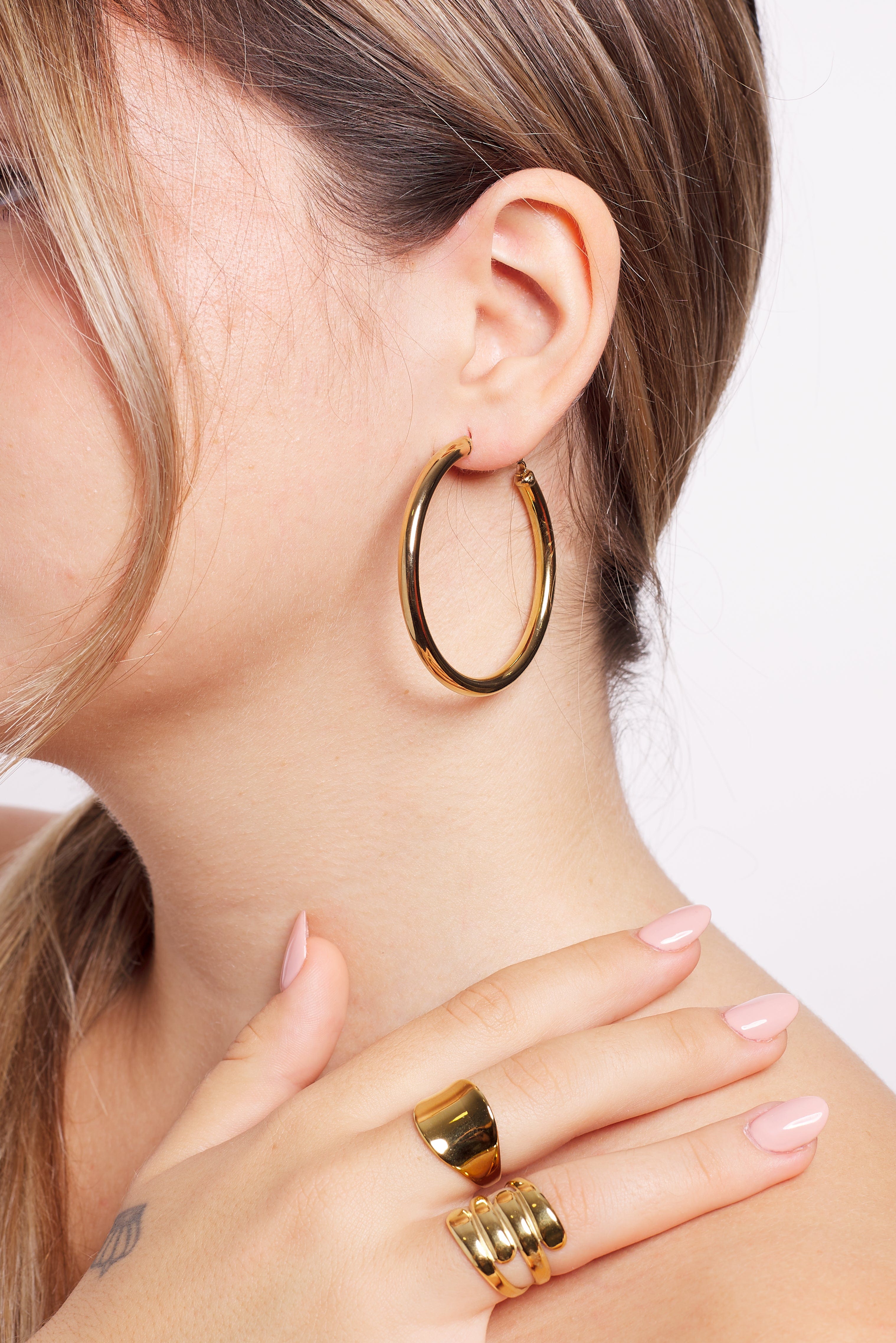 Los aros Janelle son un básico en tu joyero y en tu día a día, no pesan, son resistentes al agua , también puedes mirar las otras dos medidas, se llaman Joanie y Jocelyne.
