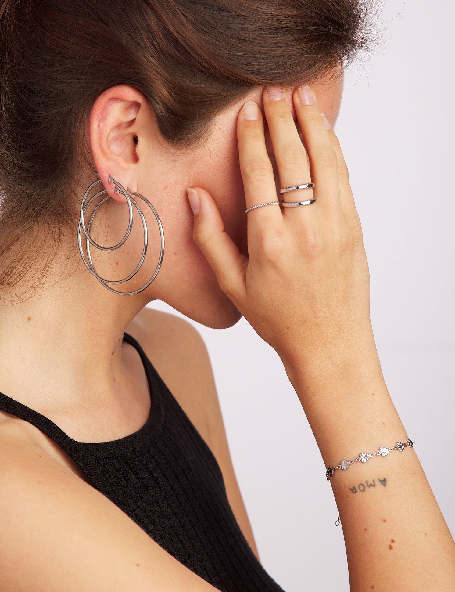 Este diseño de aro Judith M, quedarán genial con cualquier tipo de look, tanto de día, de noche o un look casual, se te hará muy fácil combinarlos si es que tienes más agüjeritos, están disponibles también en 60cm (Itziar L) y 40cm (Nieves S).