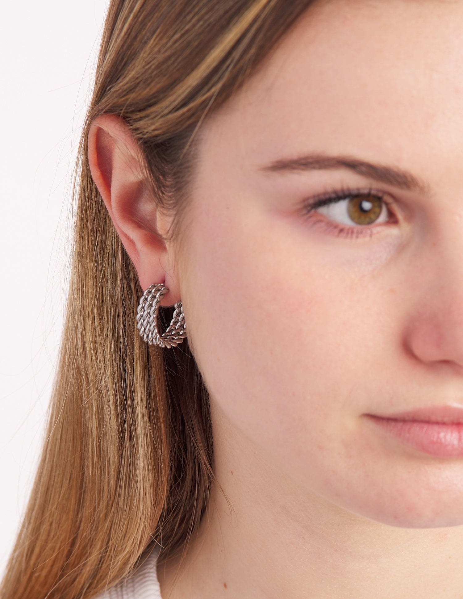 Los pendientes aro Violeta son un best seller en nuestra colección, destacan por sus tres tiras trenzadas .