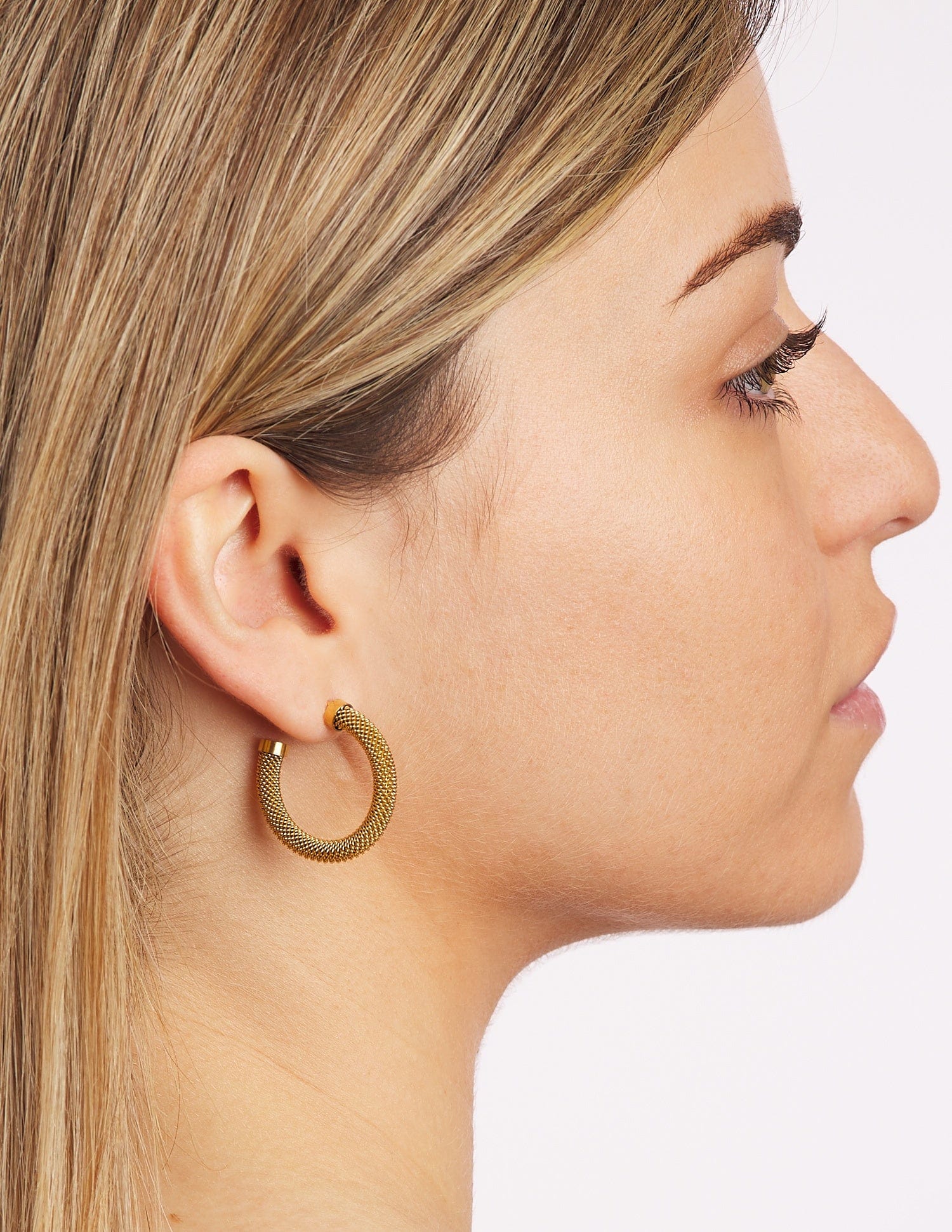 Los aros Dore, destacan por su diseño poco visto, aportará finura y elegancia a tu look, este aro de acero inoxidable está gustando mucho, su tamaño es una medida perfecta para las que no somos de aros tan pequeños ni tan grandes, podrás combinarlos con las opciones de joyitas que te ves en la foto. Son unos pendientes que estamos seguras que te preguntarán mucho por ellos. Ya sabes con qué vestido te quedará ideal?