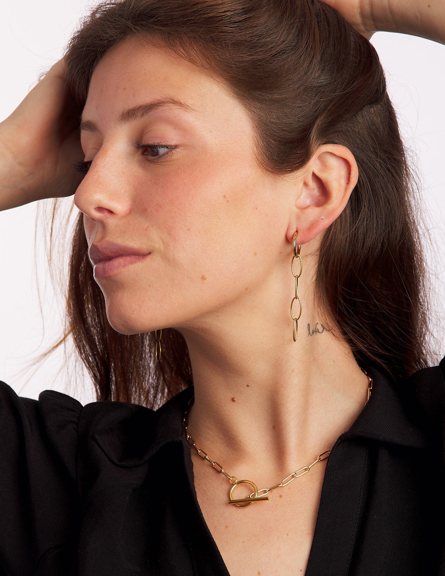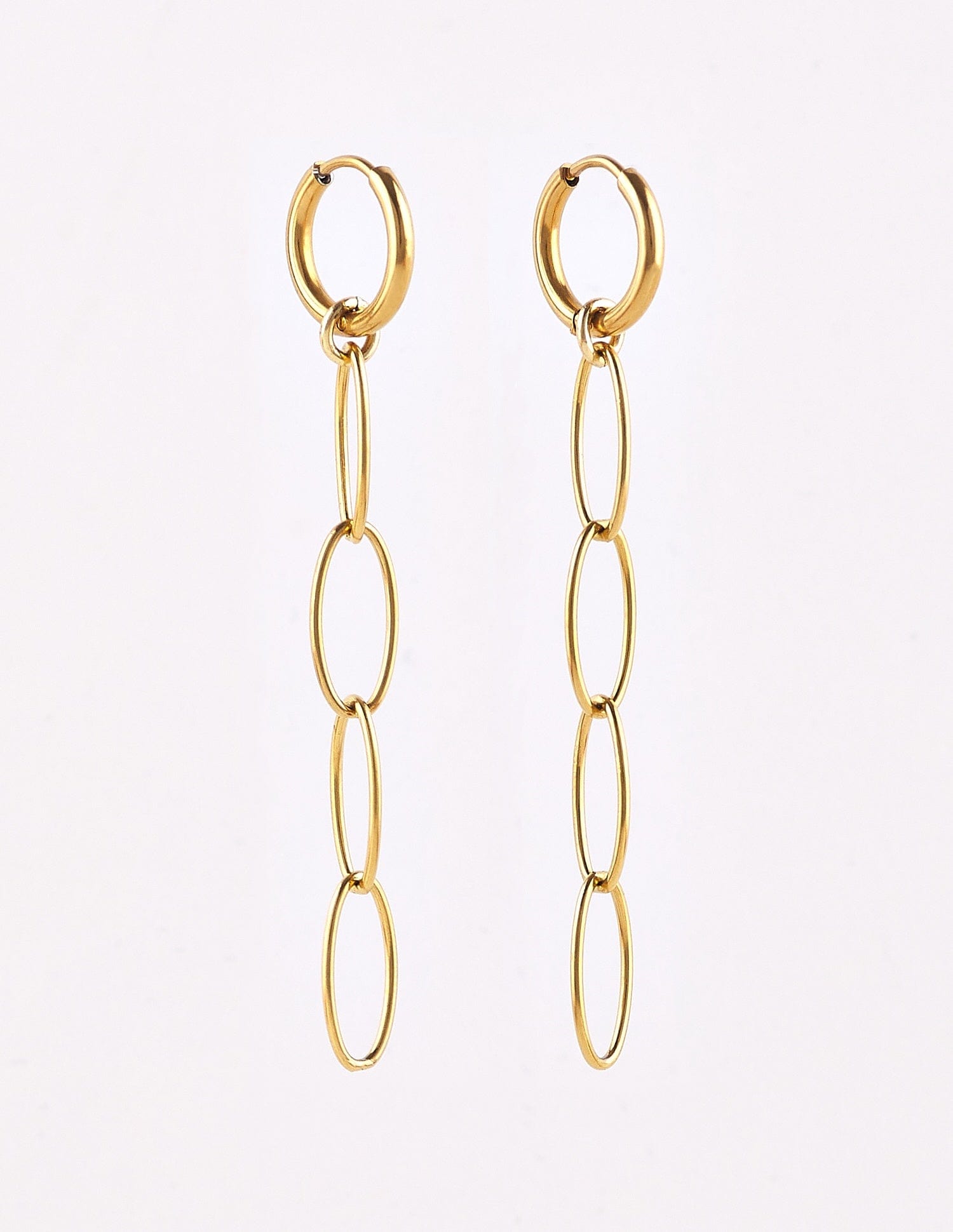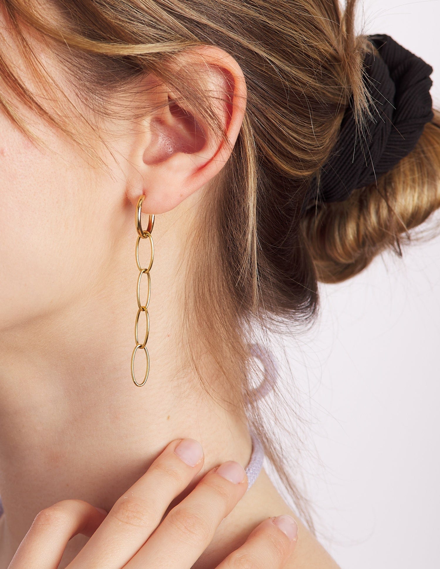 Los pendientes largos Ester están creados con cuatro eslabones en forma ovalada.