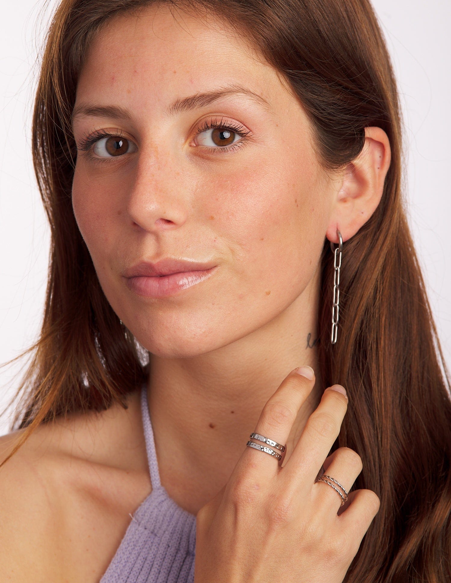 Los pendientes largos de eslabones Anabia están súper de moda, este tipo de cadena se lleva mucho en collar , pulsera y ahora lo tenemos en pendientes. Son versátiles y de muy fácil combinación, te enseñamos en una de las fotos otras joyitas para que veas con cuáles los combinamos nosotras. Este pendiente tiene un largo medio, gracias a su cierre tan cómodo de llevar podrás ponértelos y no quitártelos por varios días. Disponibles también en dorados, Samya.