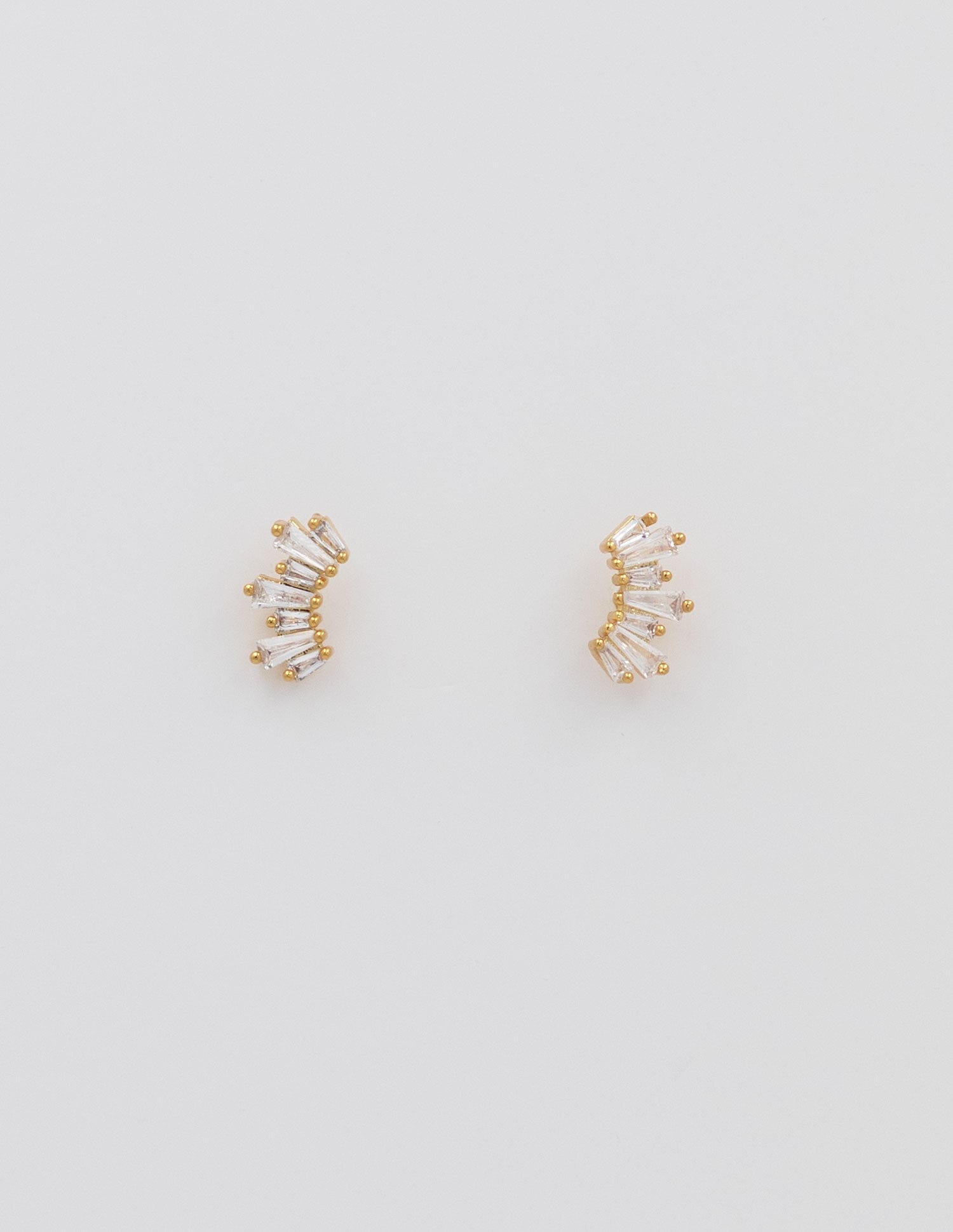 Minis trepadores brillantes de rosca en forma baguette, elegantes y perfectos para el día a día o para una ocasión especial. Sus brillantes circonitas blancas dan un toque de luz a tu combinación en la oreja. La resistencia y durabilidad del acero, mantiene su color dorado siempre.