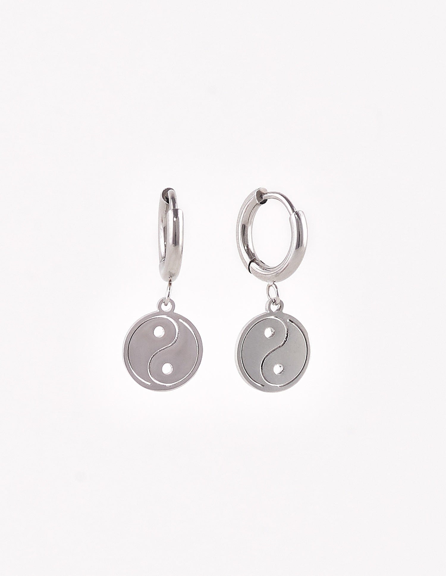 Los pendientes Elia, destacan por su forma del ying-yang , son de acero color plata y su significado religioso explica la existencia de dos fuerzas opuestas pero complementarias que son escenciales en el universo.