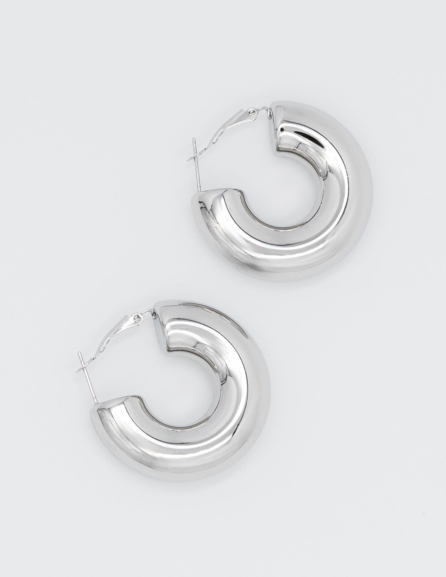Pendientes aros plateados de acero inoxidable gruesos de 40mm, también en encontrarás en nuestra colección más pequeños de 30mm. Combinadlos con tus looks más casuals y llévalos siempre ya que son atemporales.