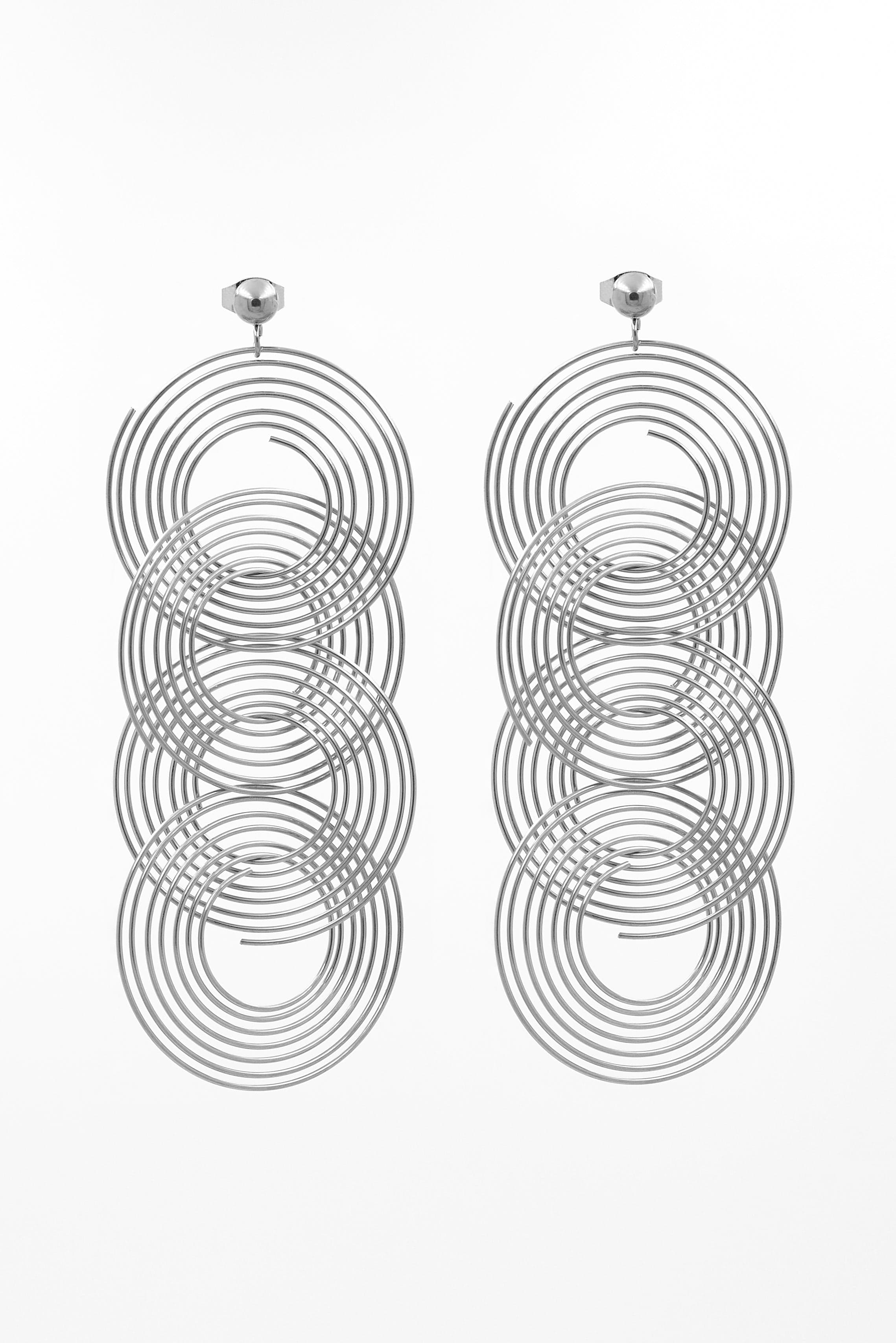 Los pendientes Kassandra te van a enamorar, puestos véis cómo quedan, no te vas a poder resistir con su forma peculiar de cuatro aros espirales y su cierre de bolita de acero que le dá un acabado precioso.