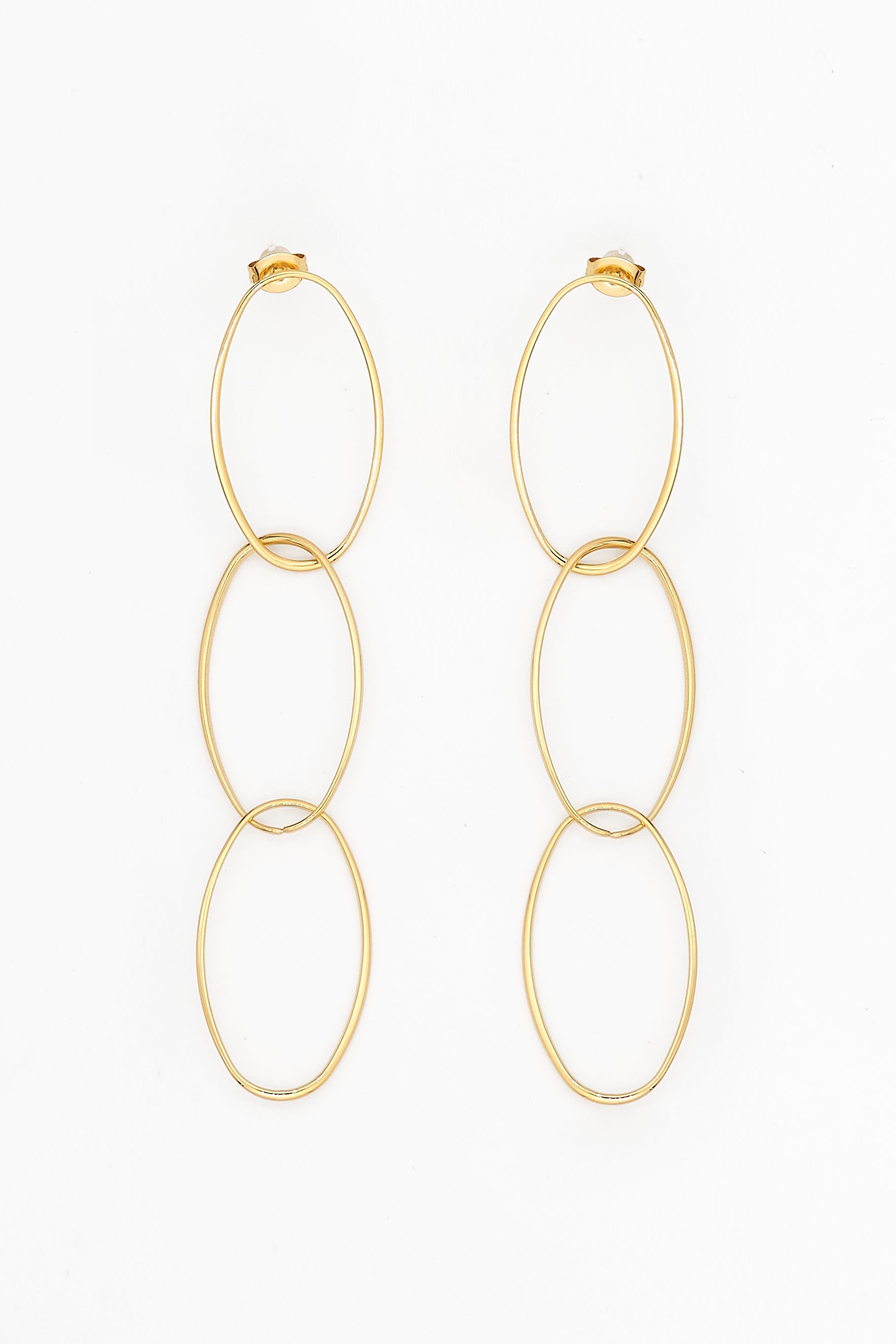 Los pendientes Lana de acero waterproof, se convertirán en tu must have . Su forma alargada de óvalos grandes estilizan la cara y te quedarán muy bien, estamos seguras!. Disponible también en collar largo, se llama Maëlle.